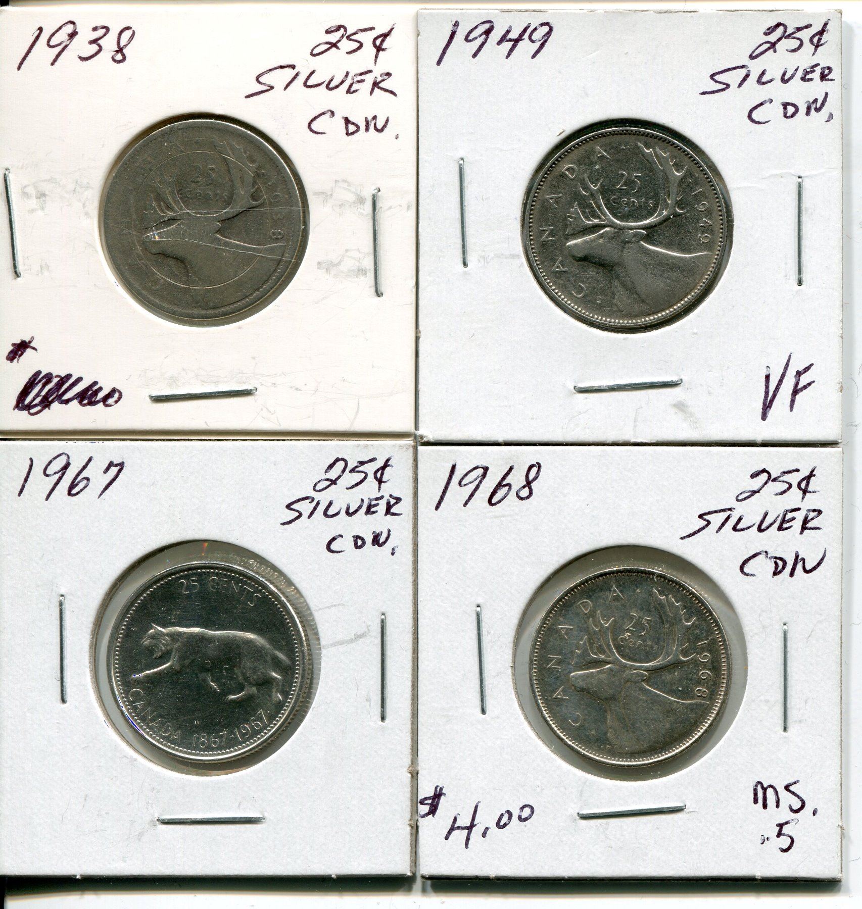 4 CNDN SILVER QUARTERS 1938, 49, 67, 68