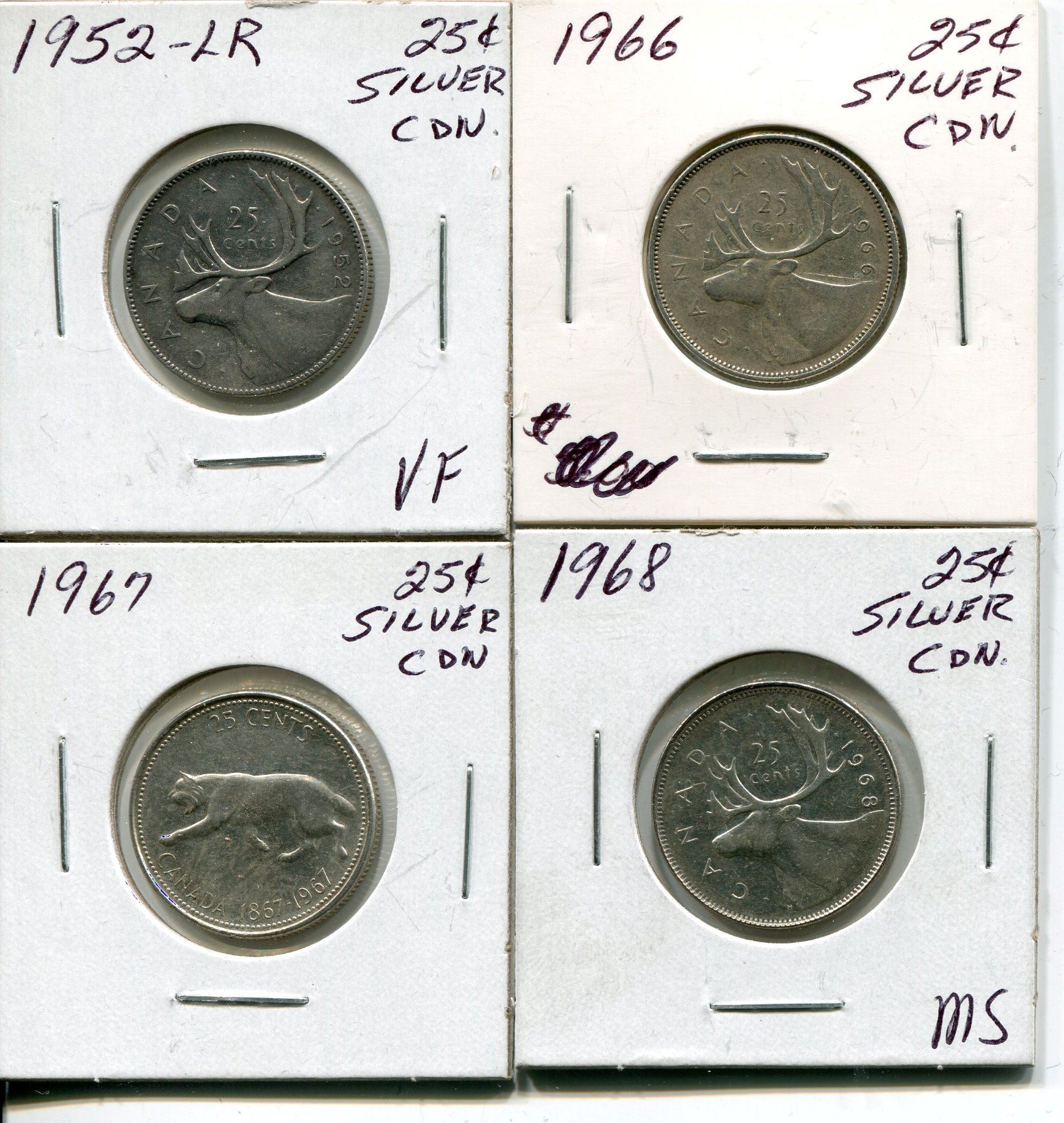 4 CNDN SILVER QUARTERS 1952, 66, 67, 68