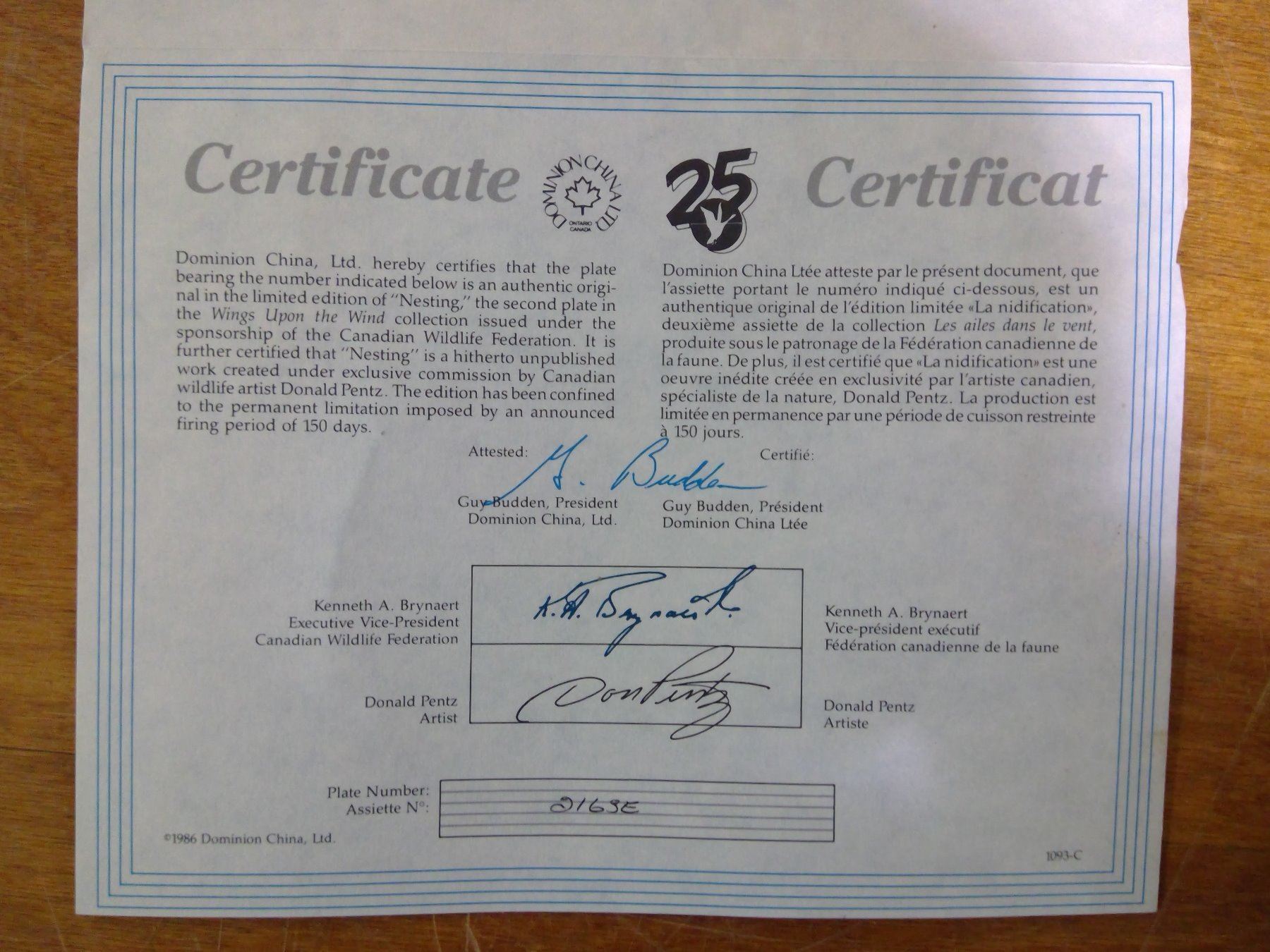 4- COLLECTABLE DOMINION PLATES W/ CERTIFICATES