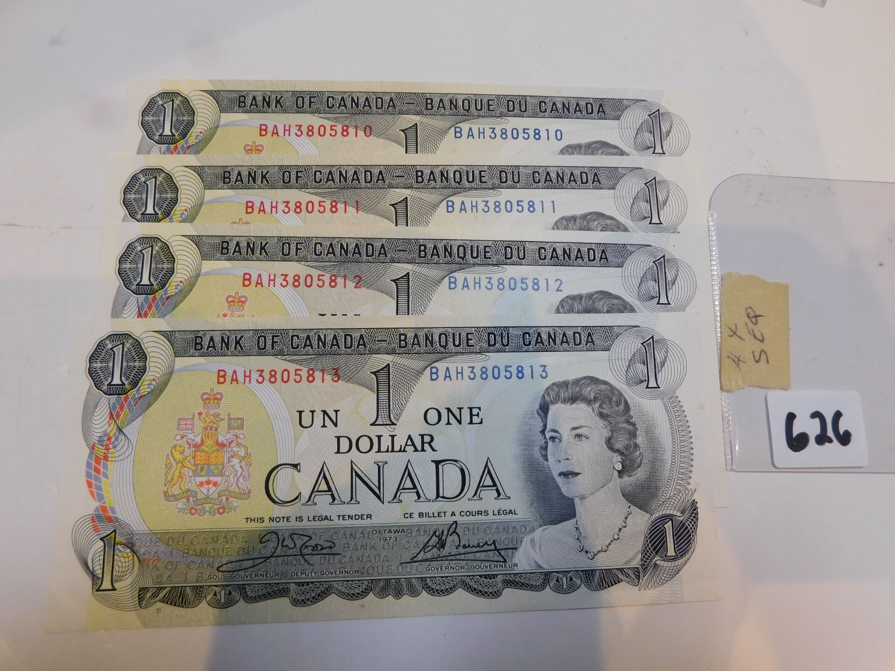 4-CONSECUTIVE 1973 ONE DOLLAR BILLS UNC