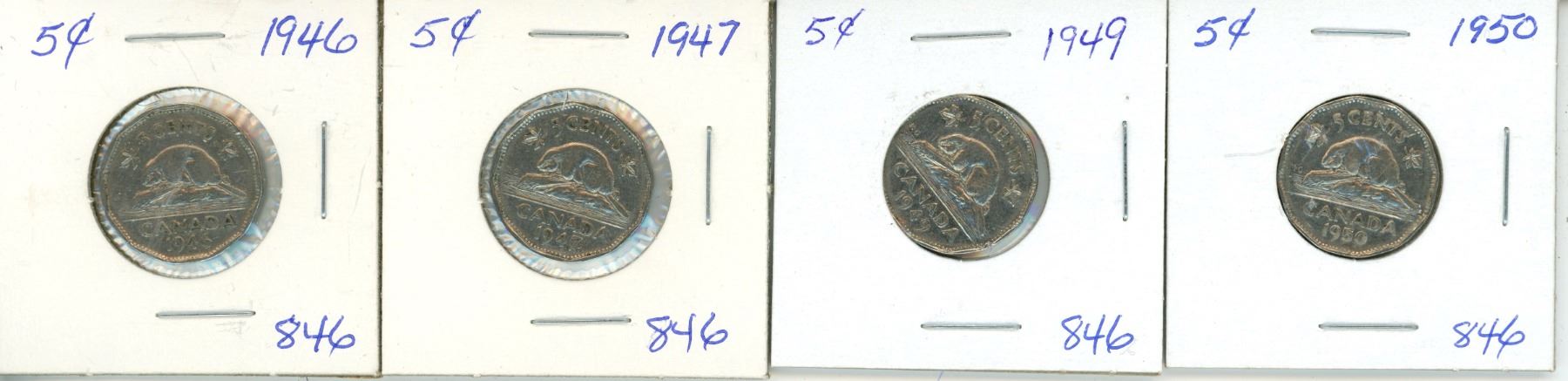 4 Canada 5¢ - 1946, 1947, 1949, 1950