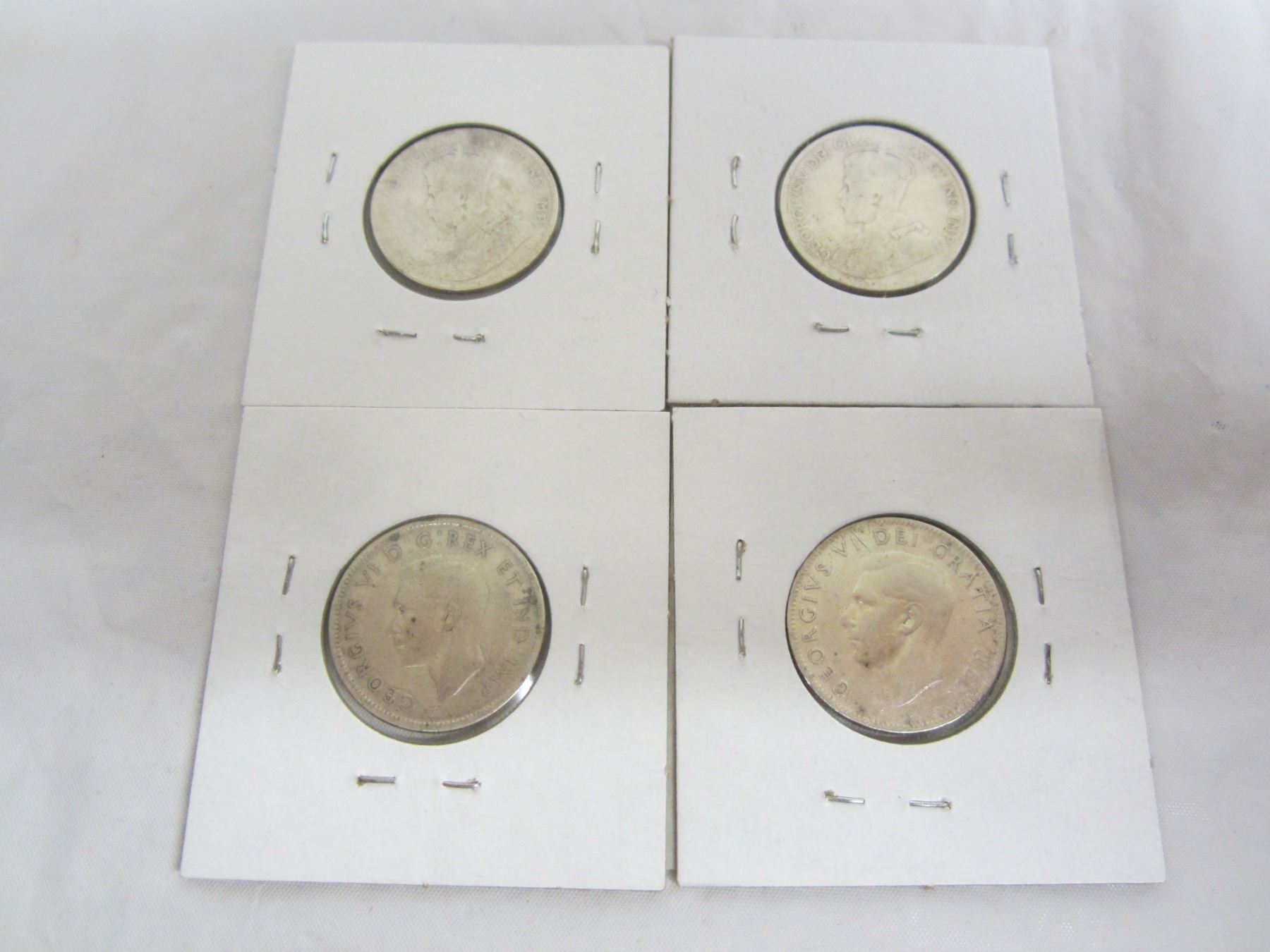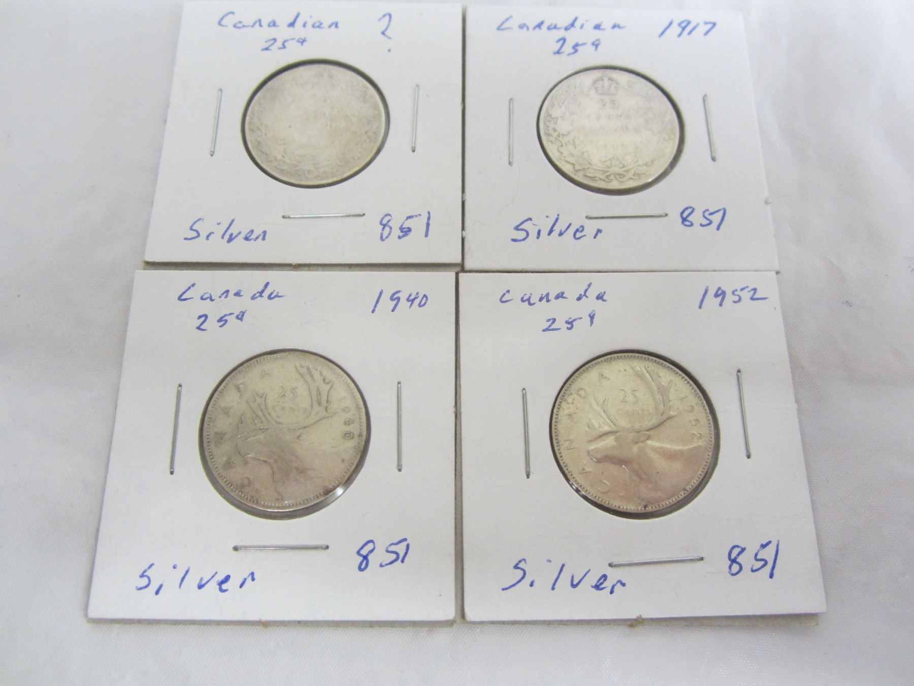 4 Canadian Silver Quarters 19??, 1917, 1940, 1952