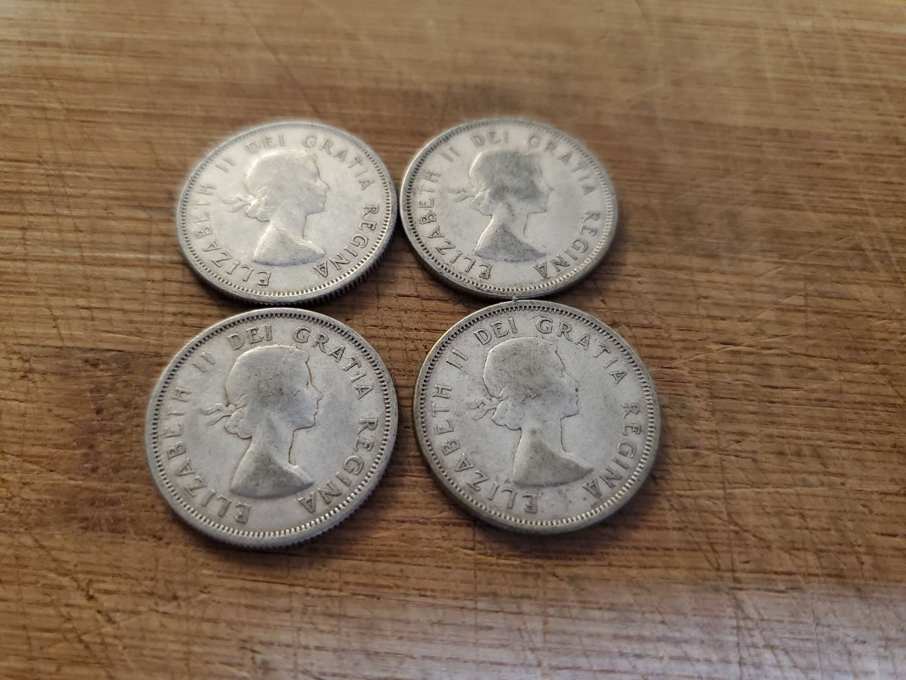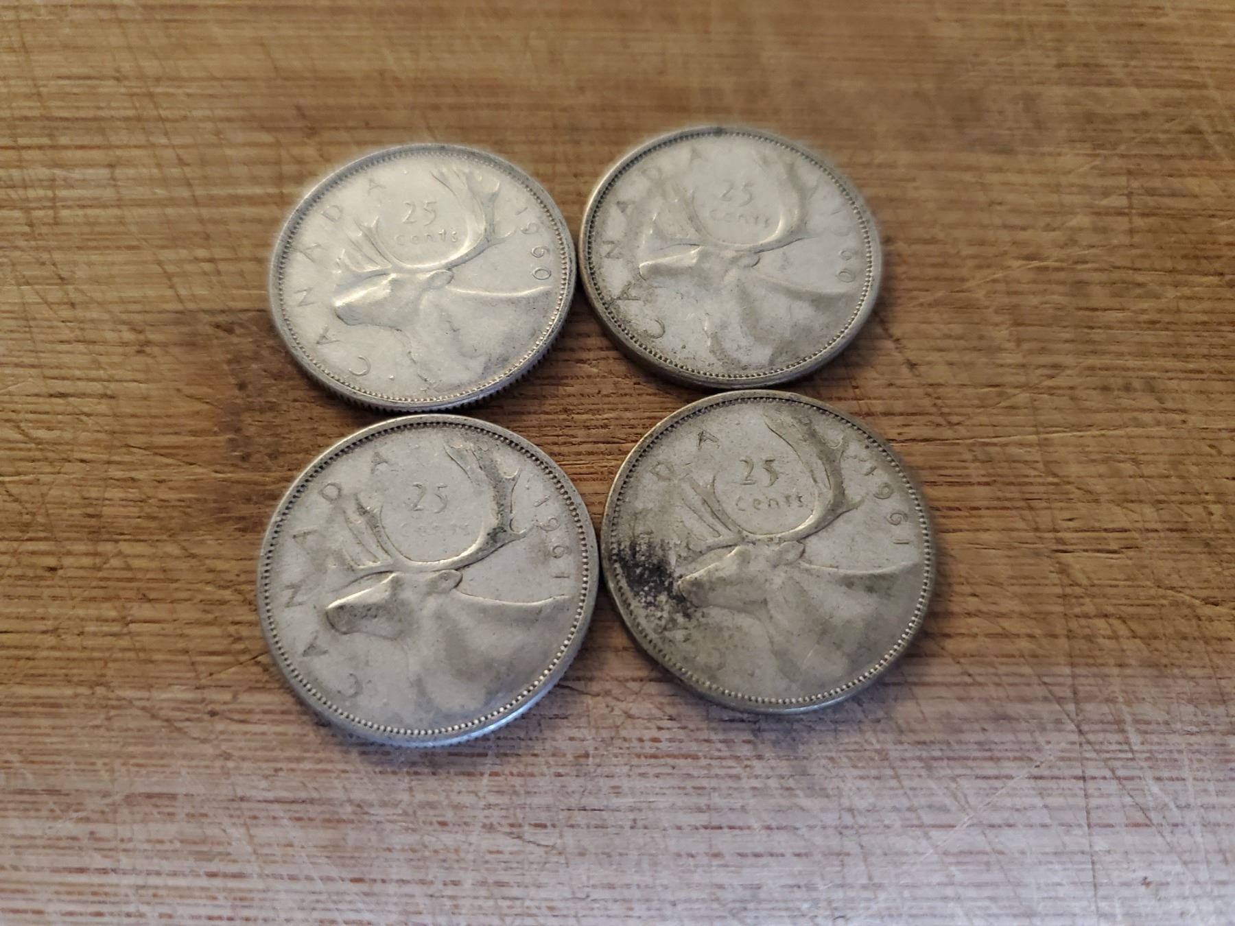 4 Canadian Silver Quarters 1960 x 2, 1961 x 2