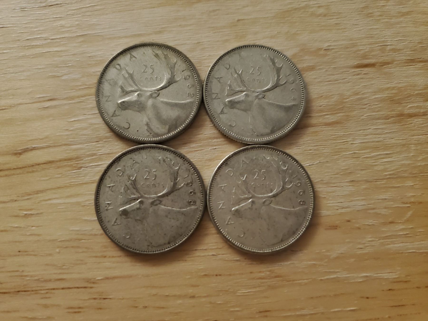 4 Canadian Silver Quarters 1962, 1964, 1968 x 2