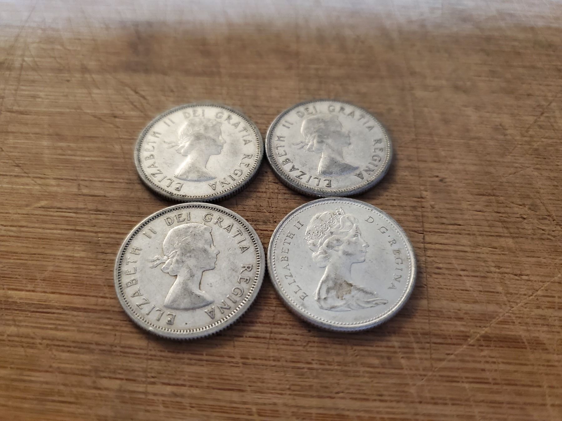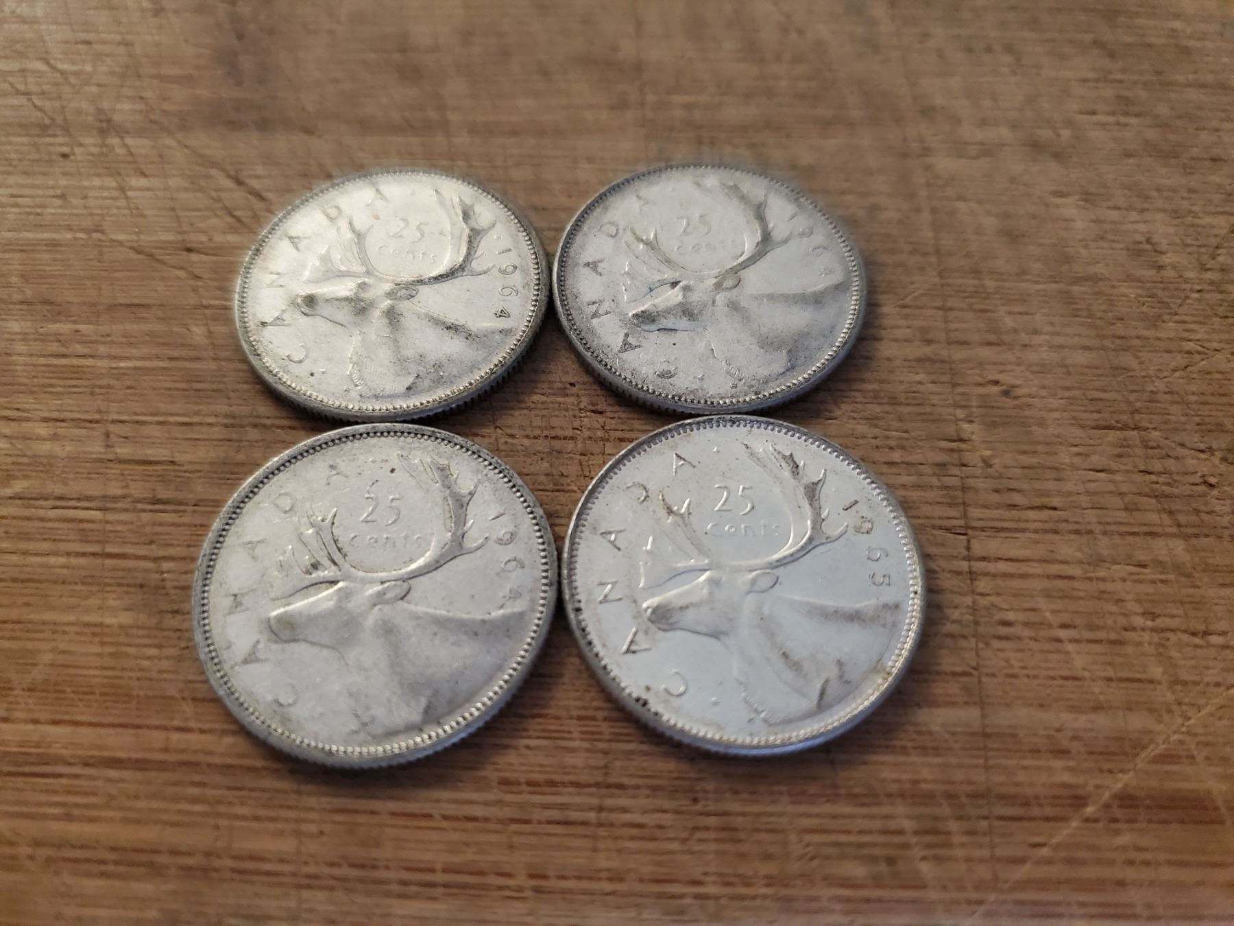 4 Canadian Silver Quarters 1964 x 3, 1965