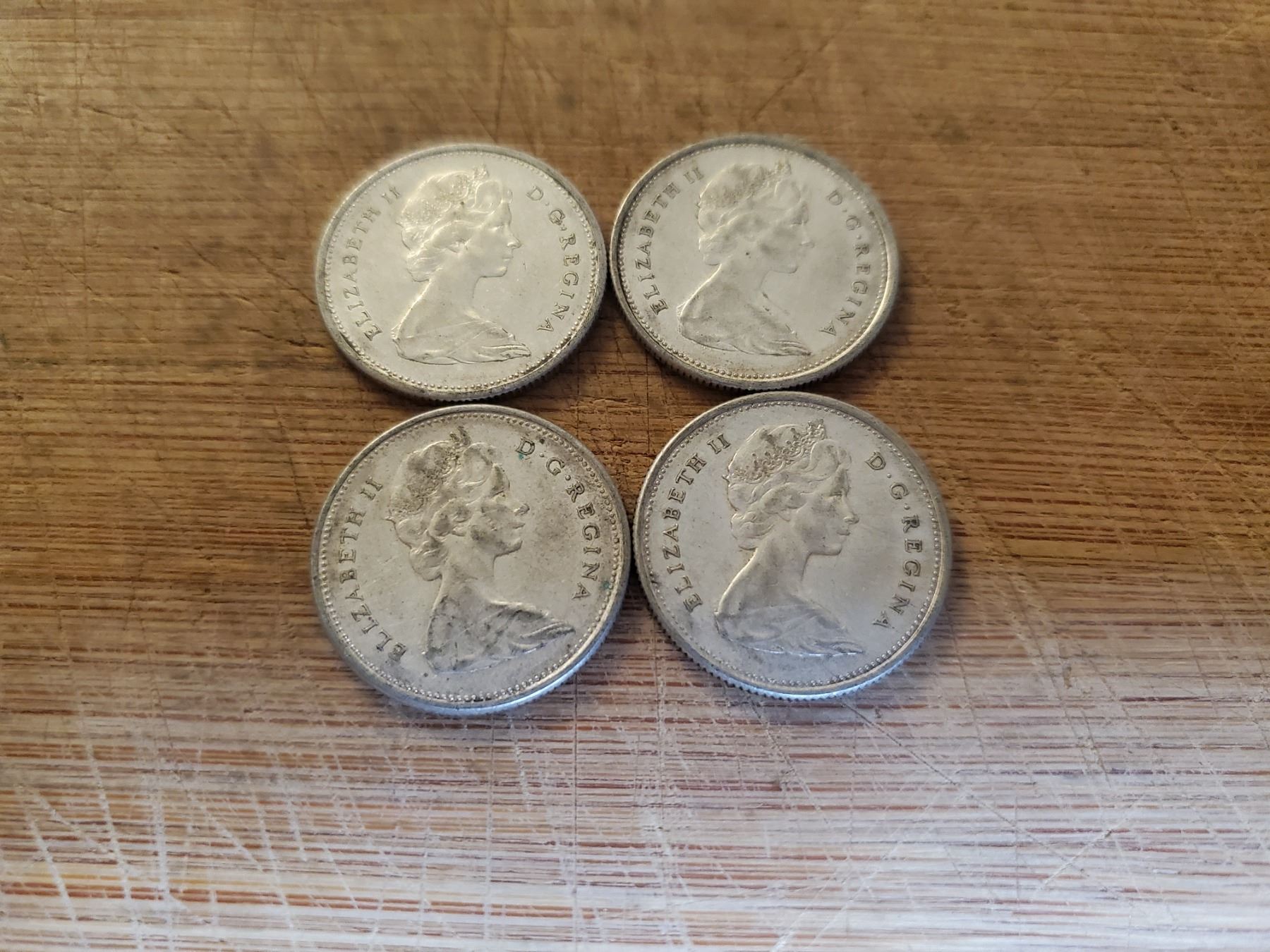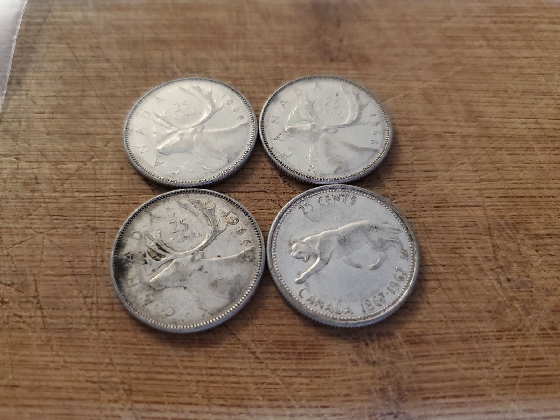 4 Canadian Silver Quarters 1966 x 3, 1967