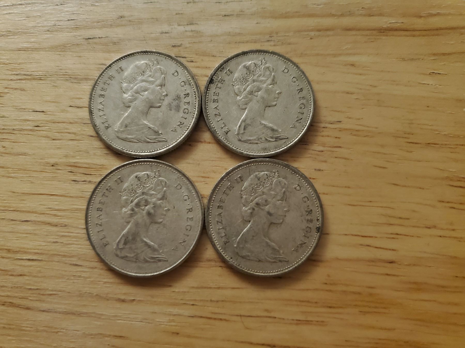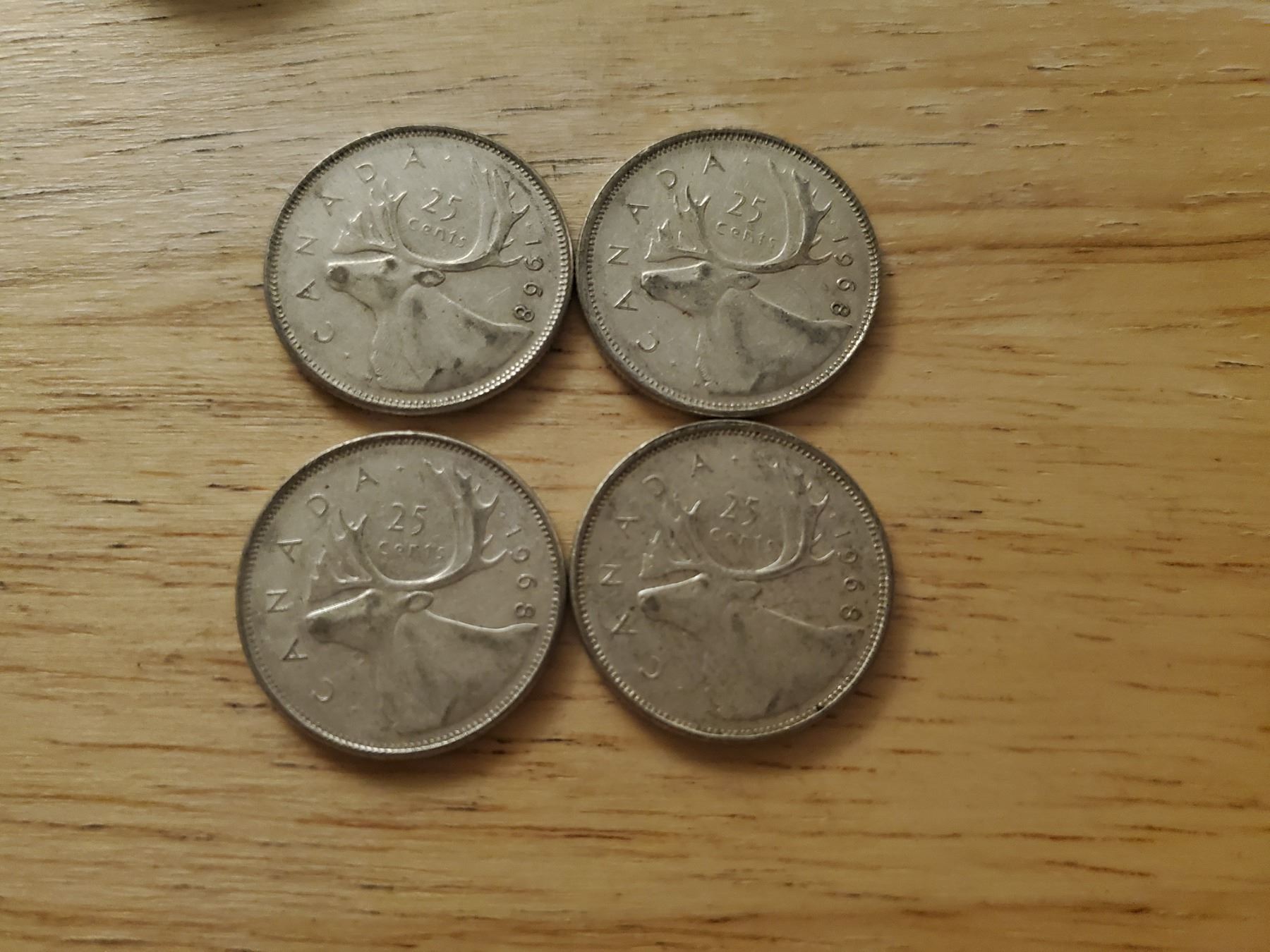 4 Canadian Silver Quarters 1968 x 4 (non magnetic)