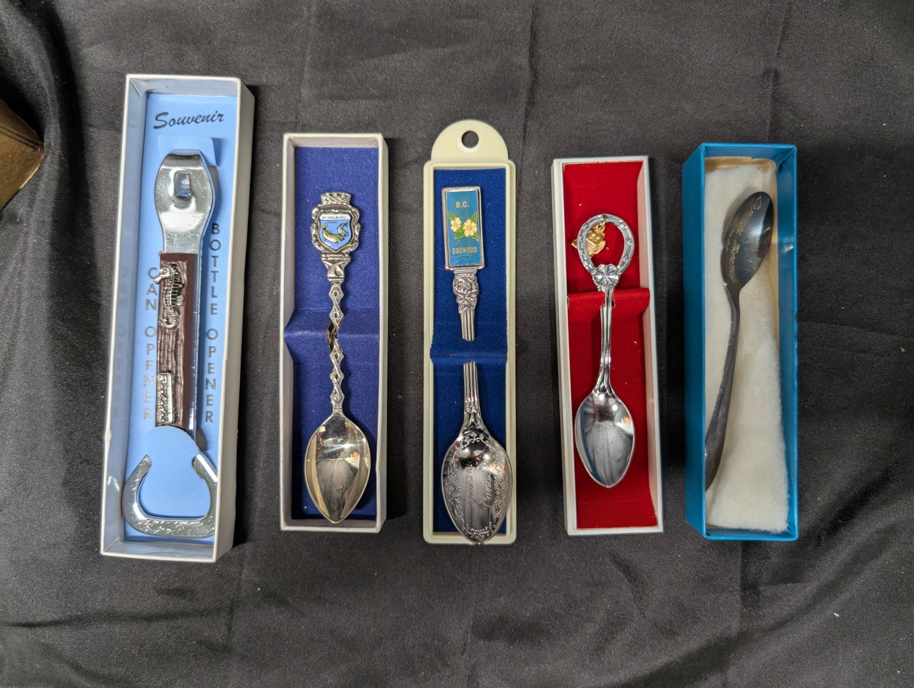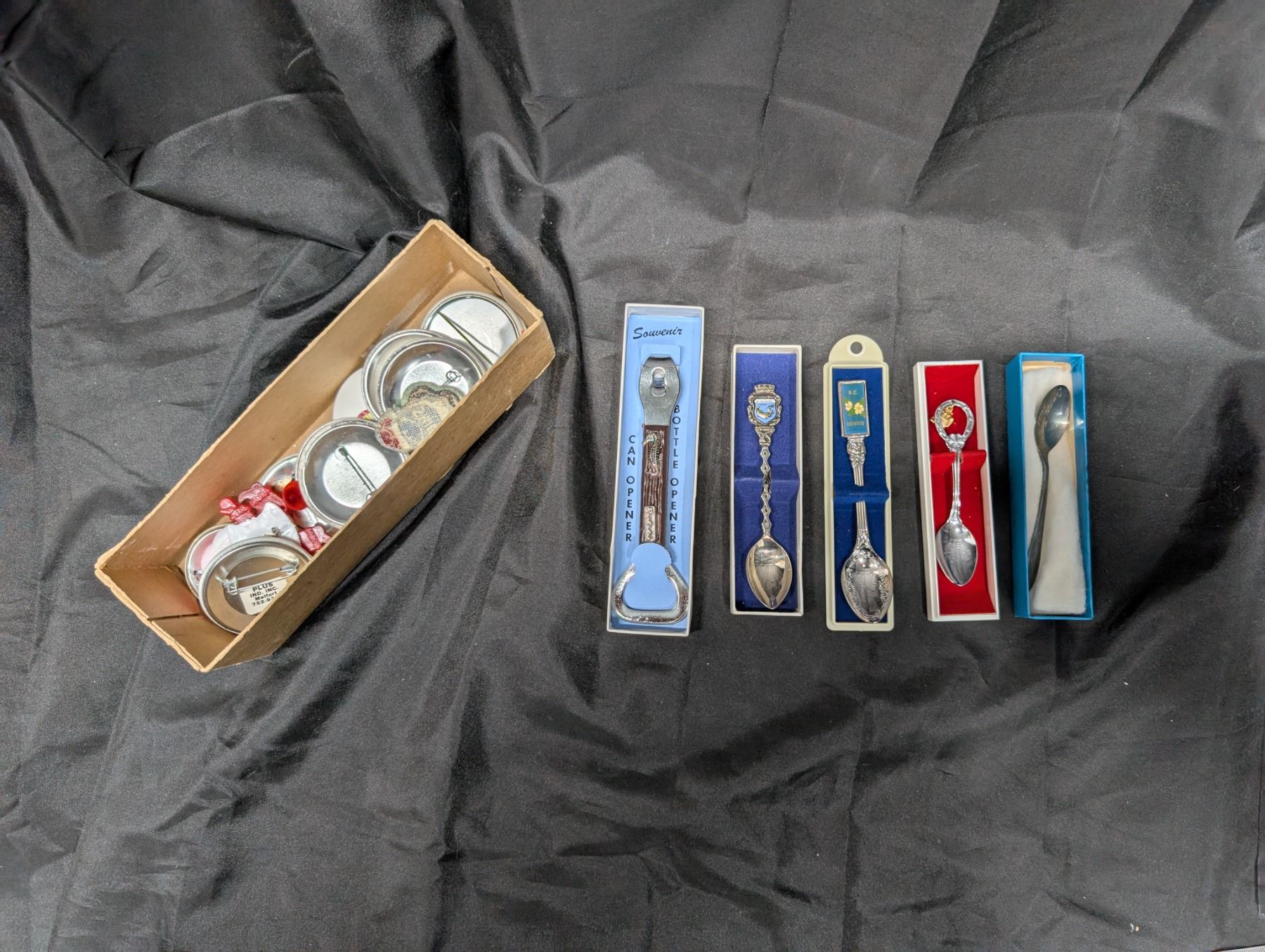 (4) Décor special spoons (1) Special Bottle Opener w/ Collectin of Variety of Pins