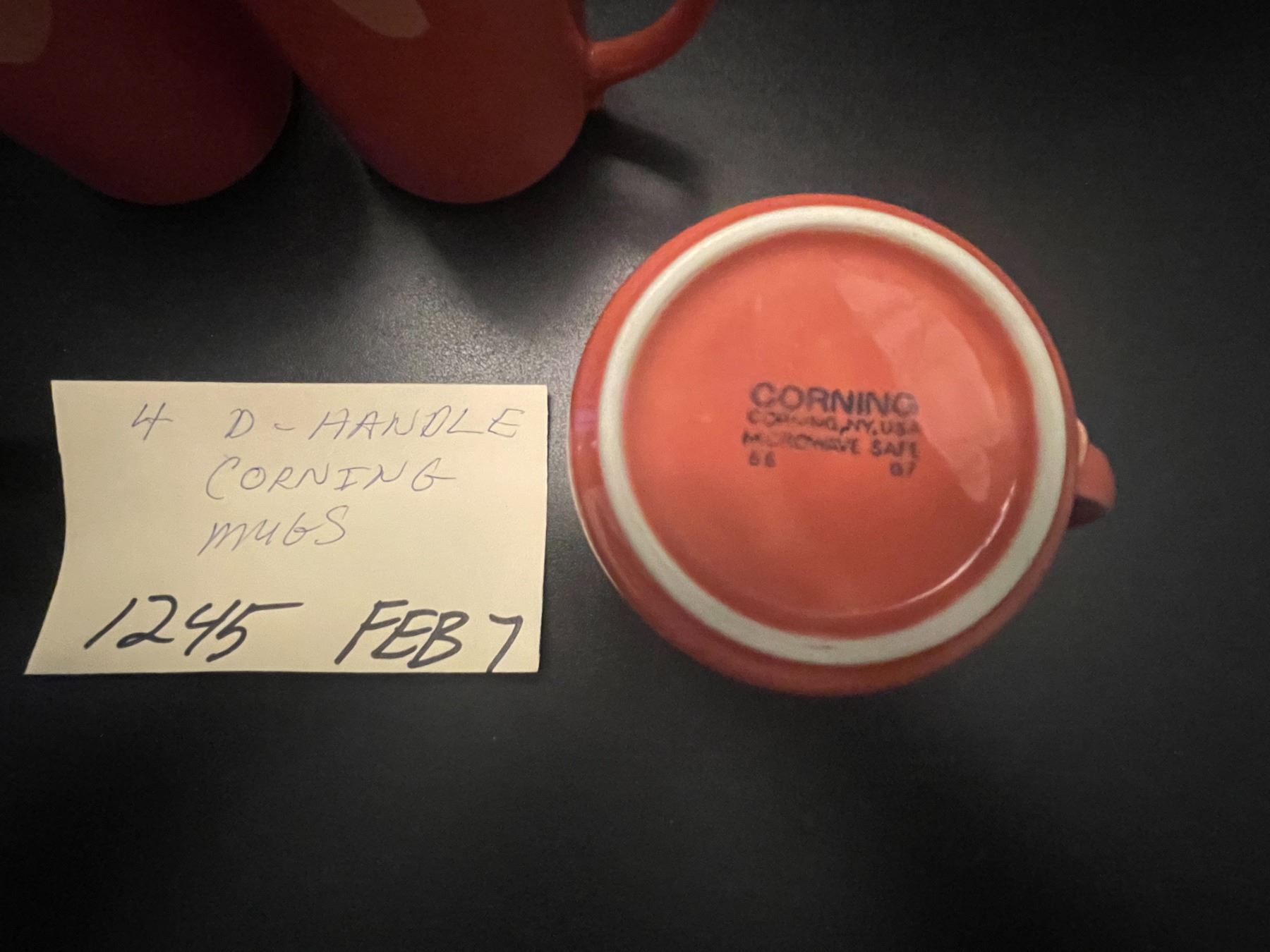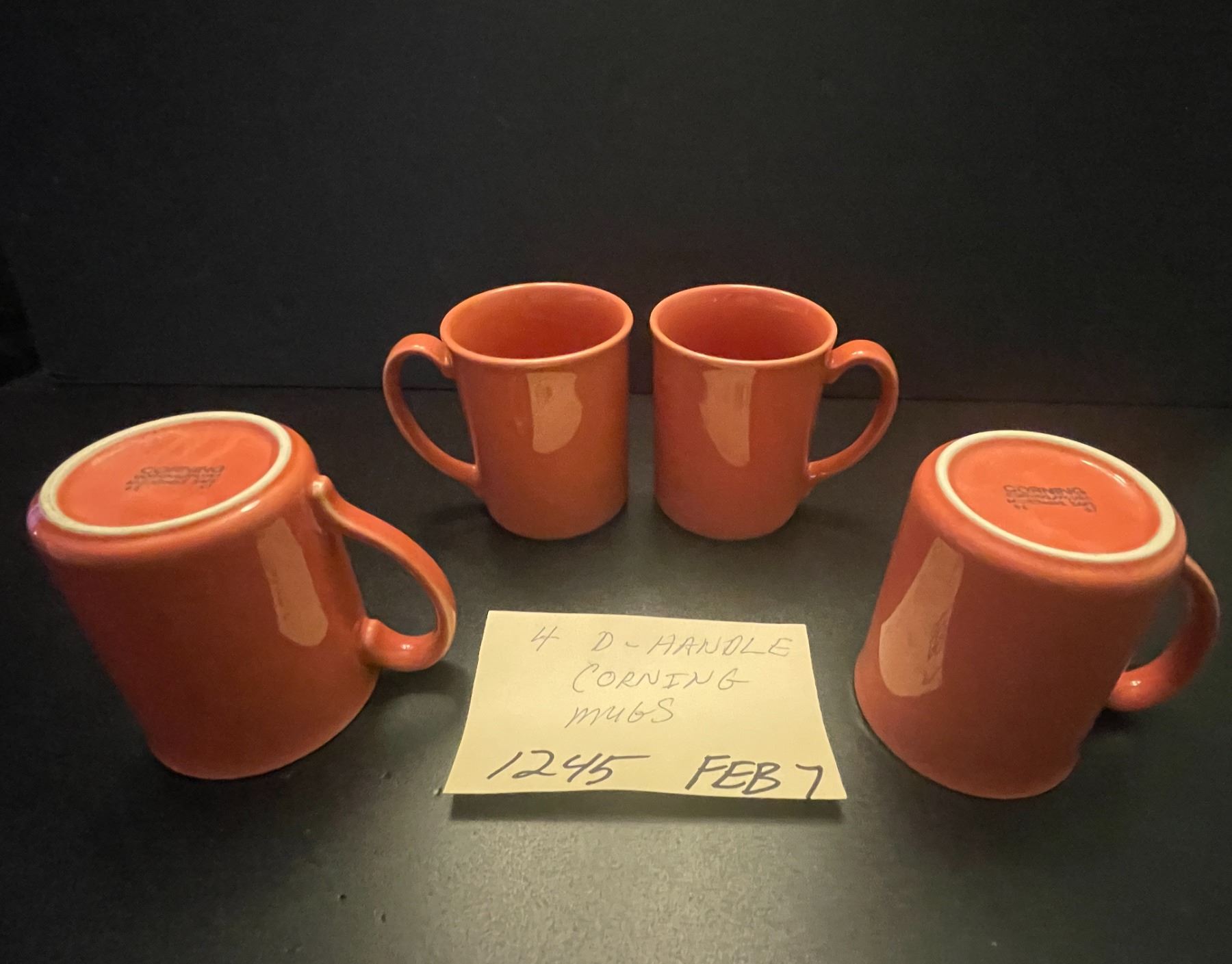 4 - D-handle Corning coffee mugs - coral pink