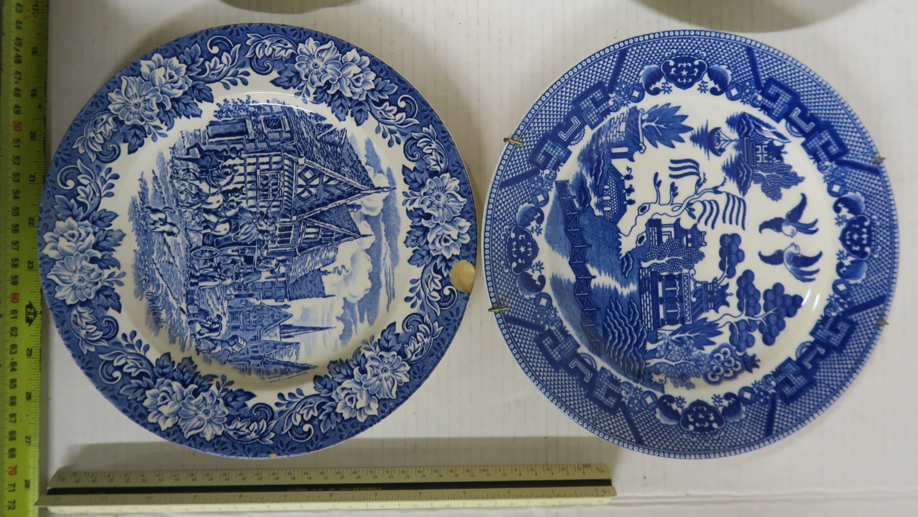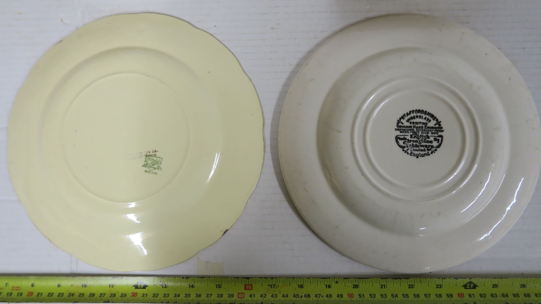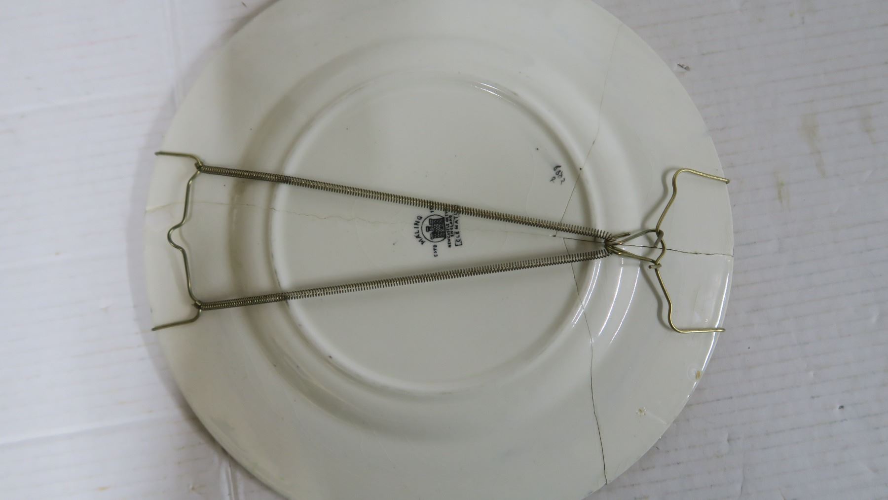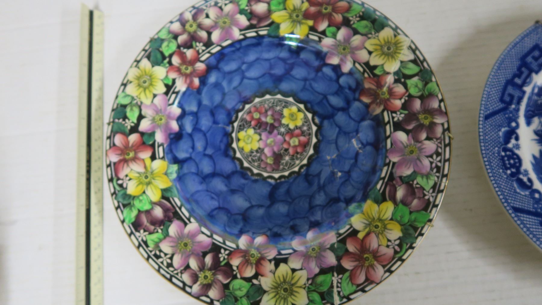 4 Decorative plates - stall Oro shire plate (chipped), Rose with Gold trim (English plate), Repaired flower medallion, Blue plate (chipped)