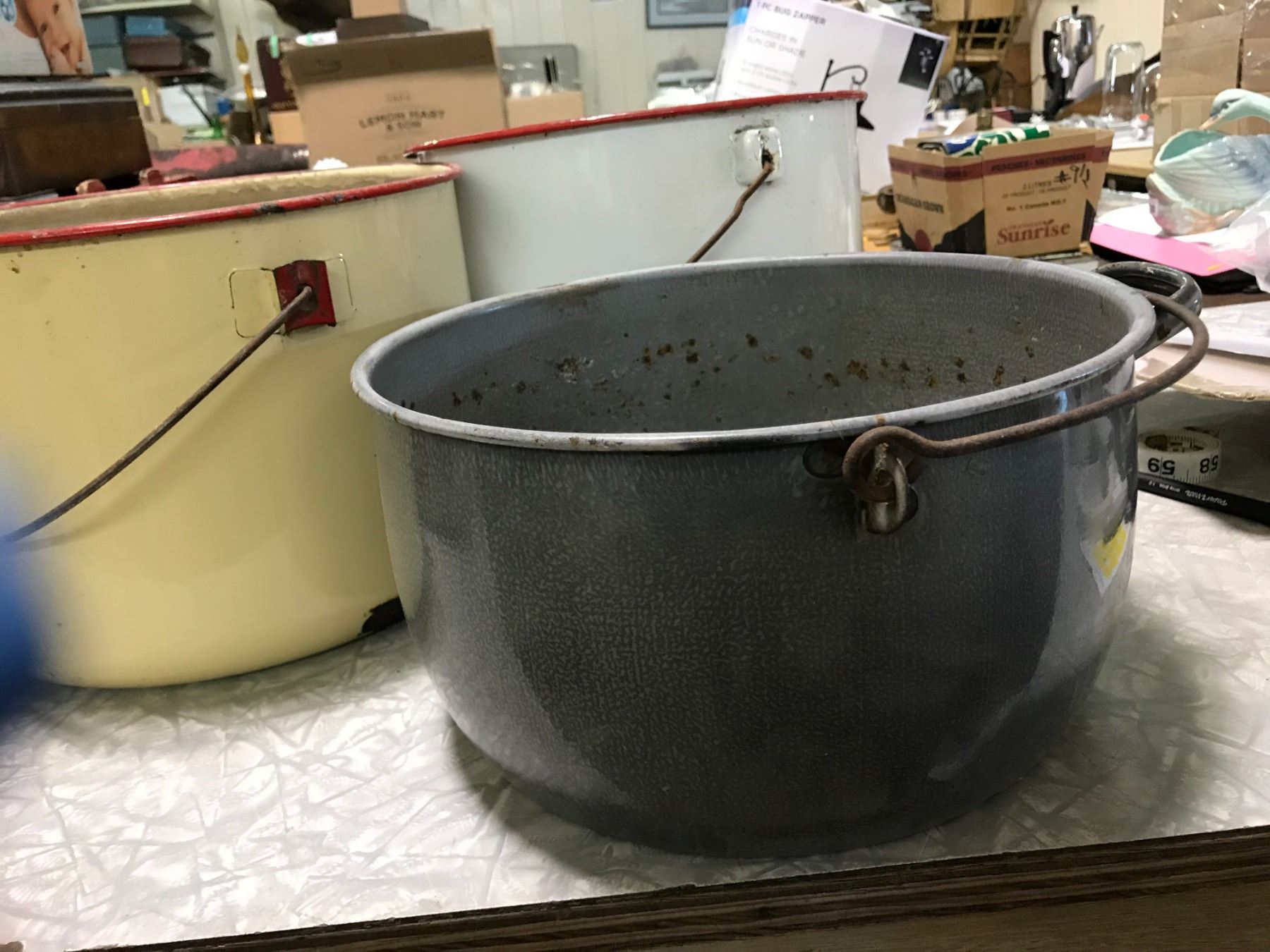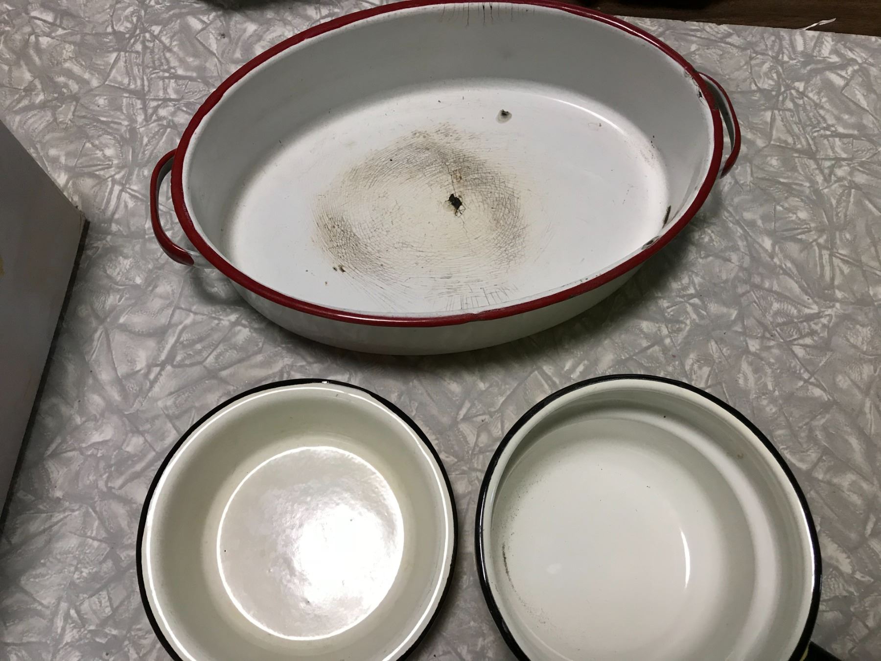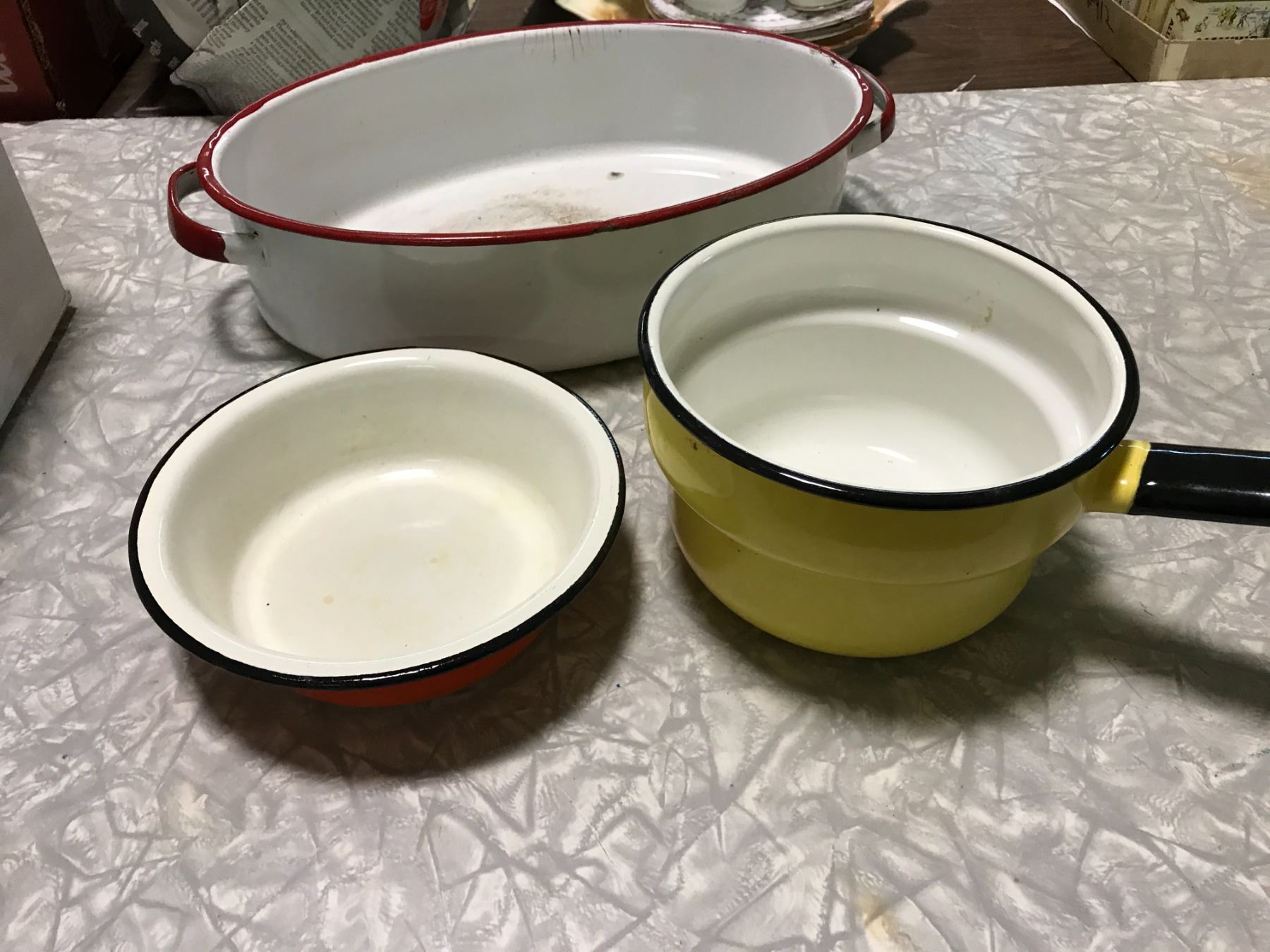 4 ENAMEL POTS + 1 OVEN DISH ENAMEL + ENAMEL BOWL