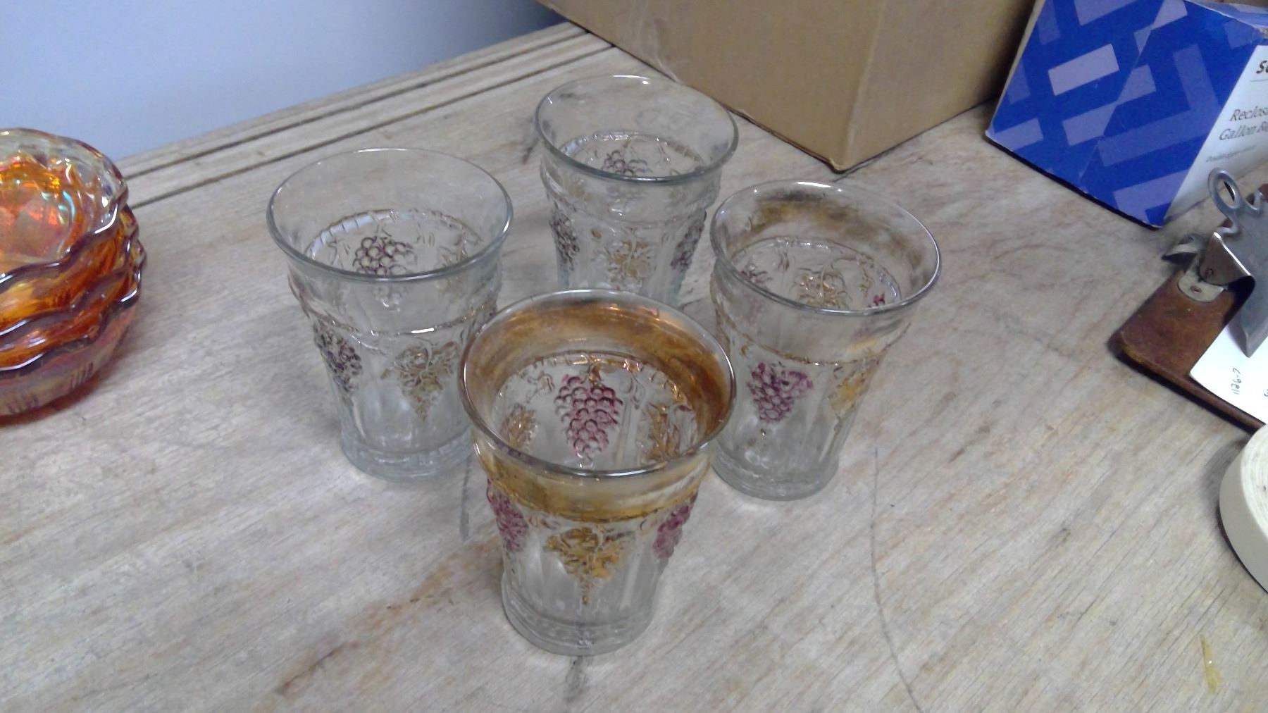 (4) GRAPE PATTERN TUMBLERS