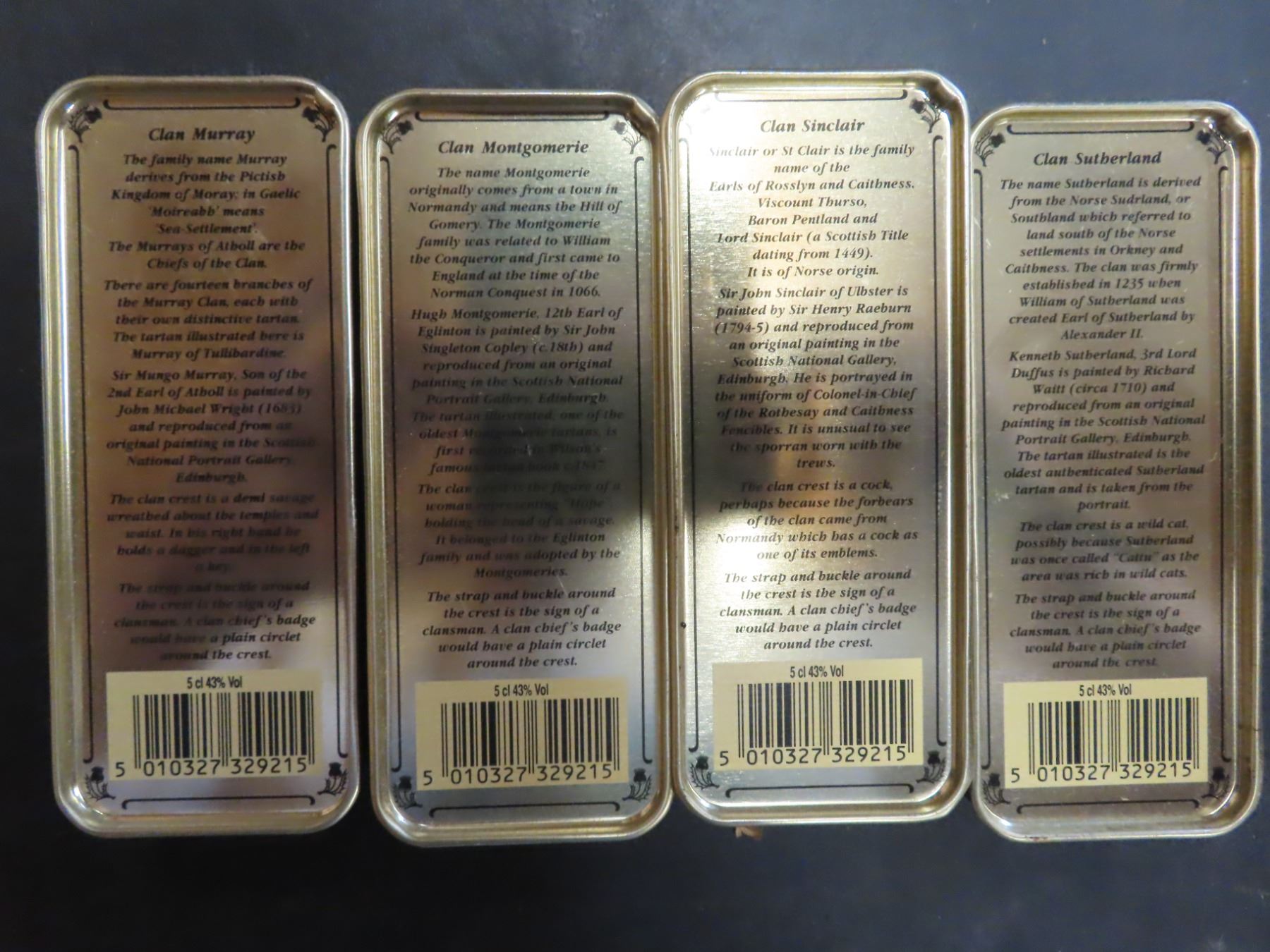 4 Glen Fiddich tins