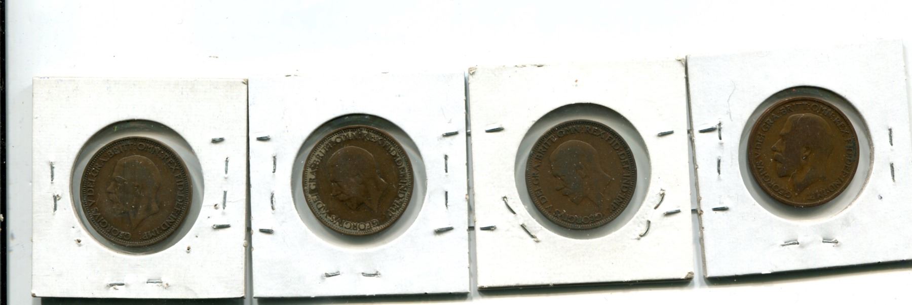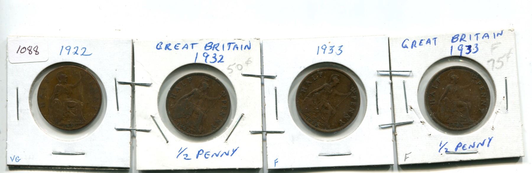 4 King Georgivs V Half Pennies - 1922, 1932, 2x 1933