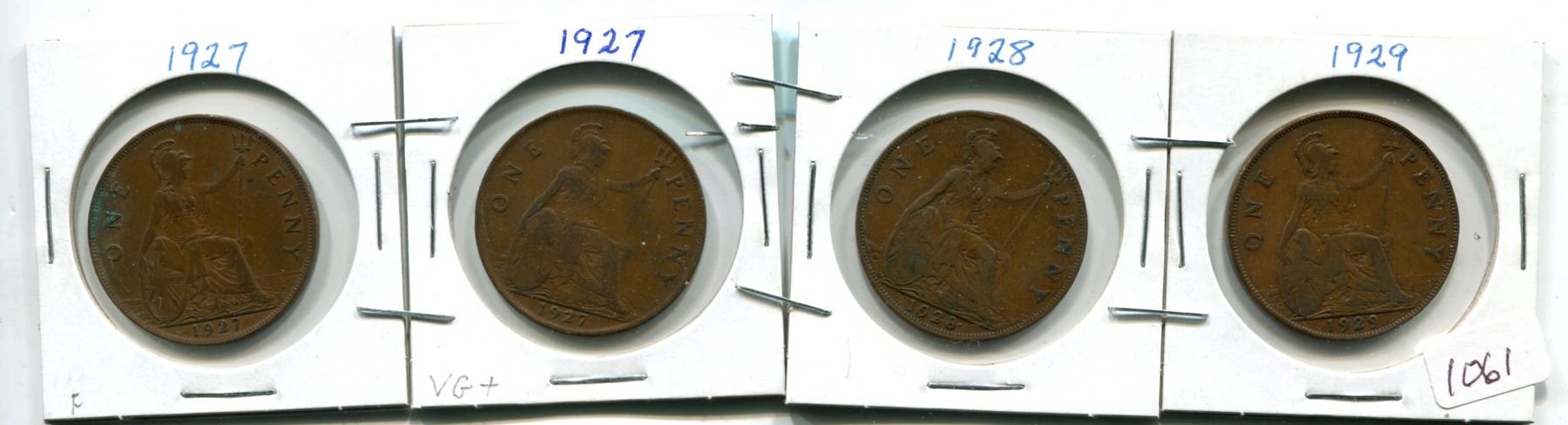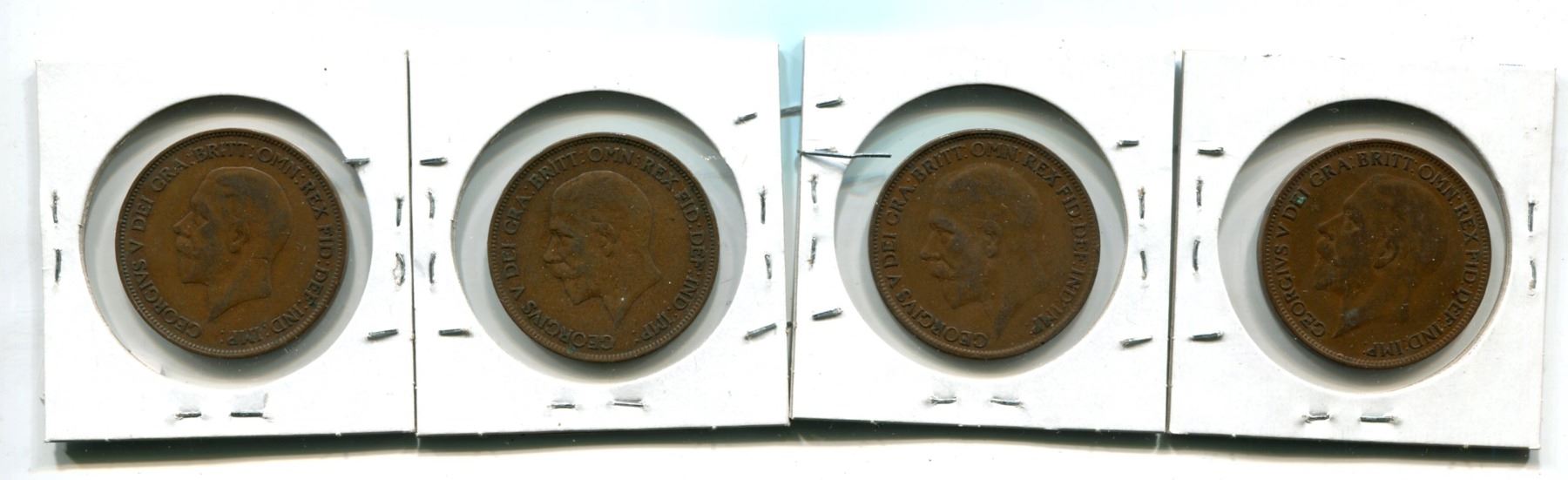 4 King Georgivs V Large Pennies - 1927F, 1927VG+, 1928 (2)