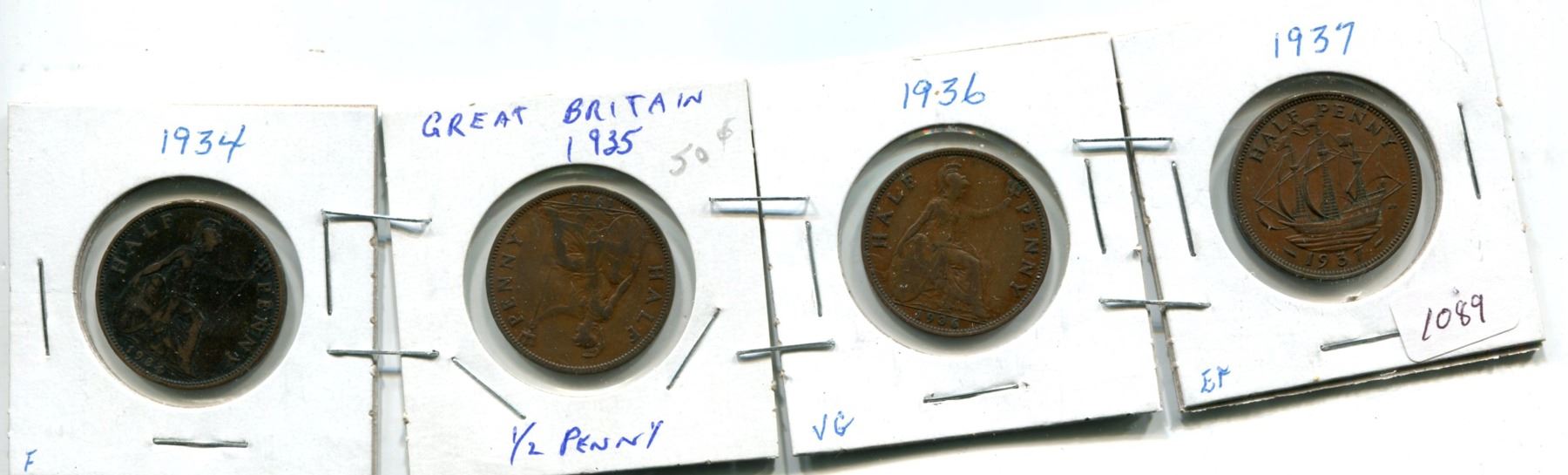 4 King Georgivs V/VI Half Pennies (1934-1937)