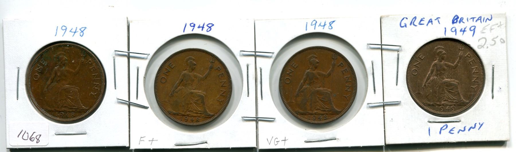 4 King Georgivs VI Large Pennies - 3x 1948, 1949 EF+