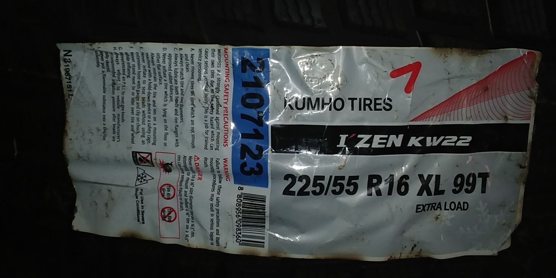 (4) KUMHO 225/55R16, 4 TIMES BID PRICE