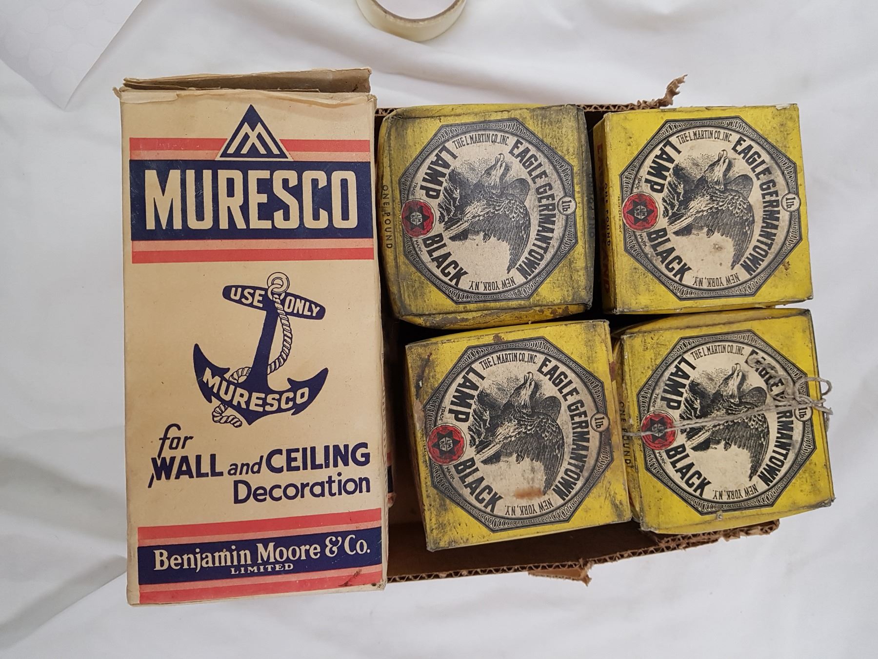 4 LAMP BLACK AND 2 MURESCO UNUSED BOXES