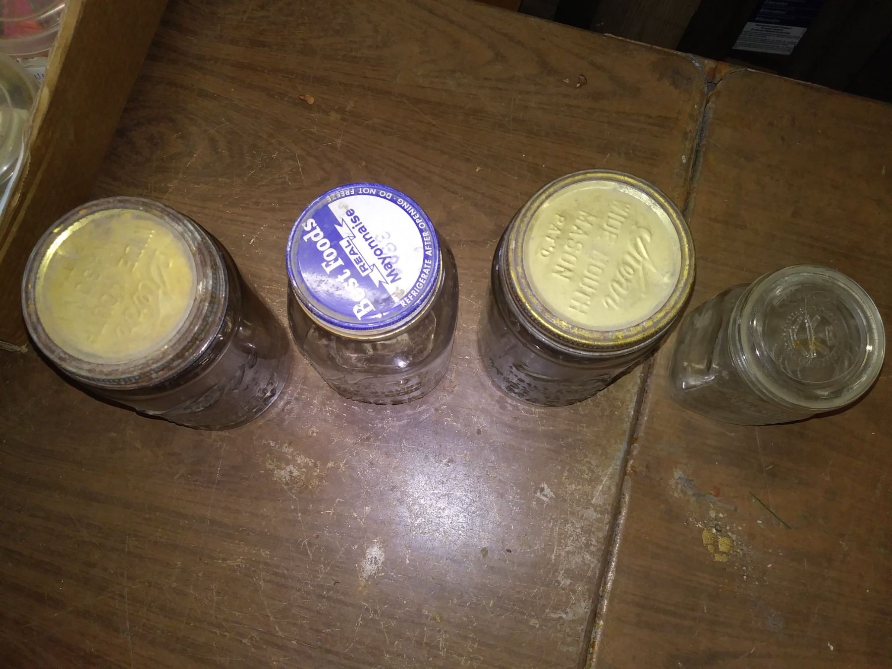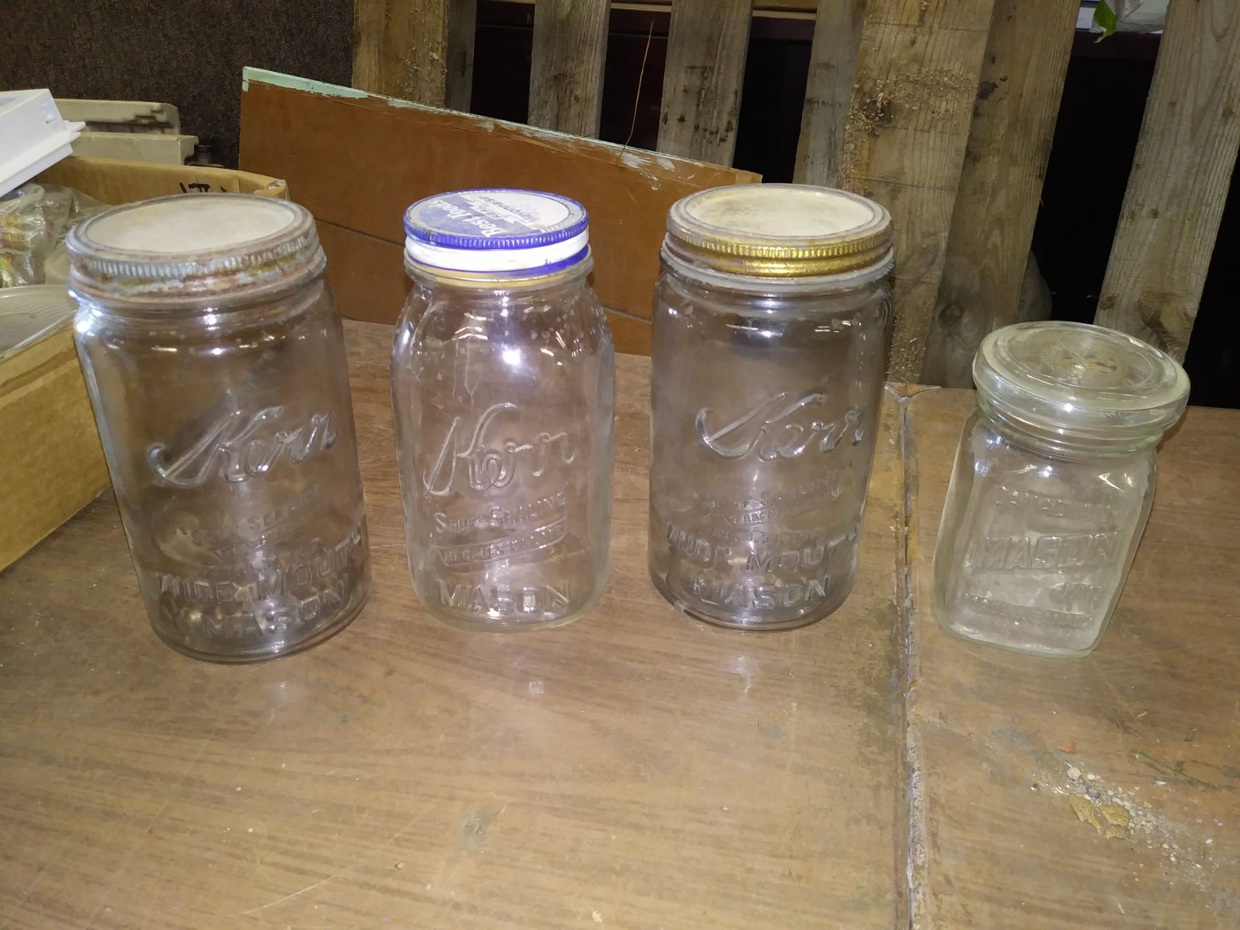4 MASON JARS (CANADIAN MASON JAR W/ KANT KRACK LID, 3 KERR)