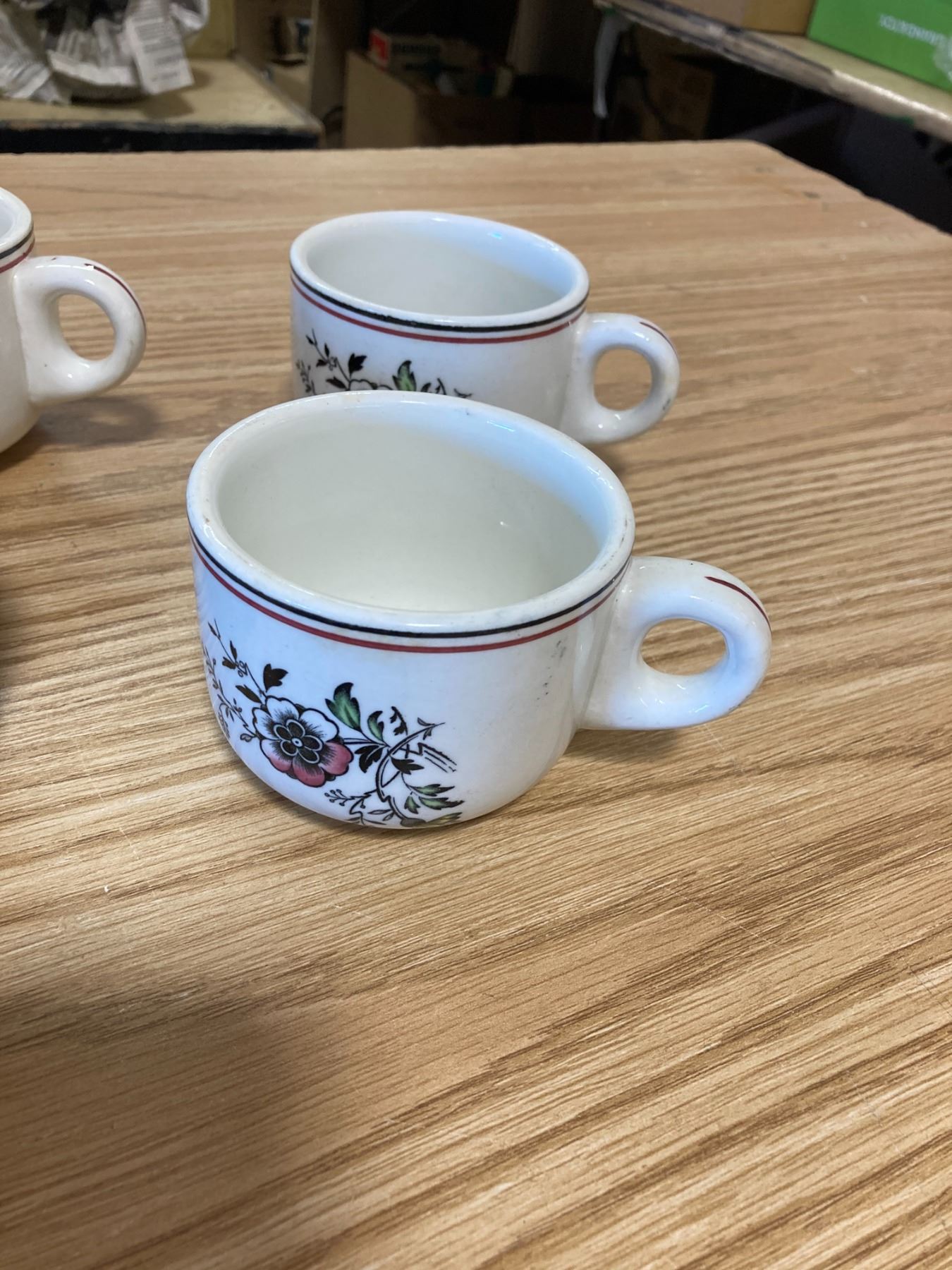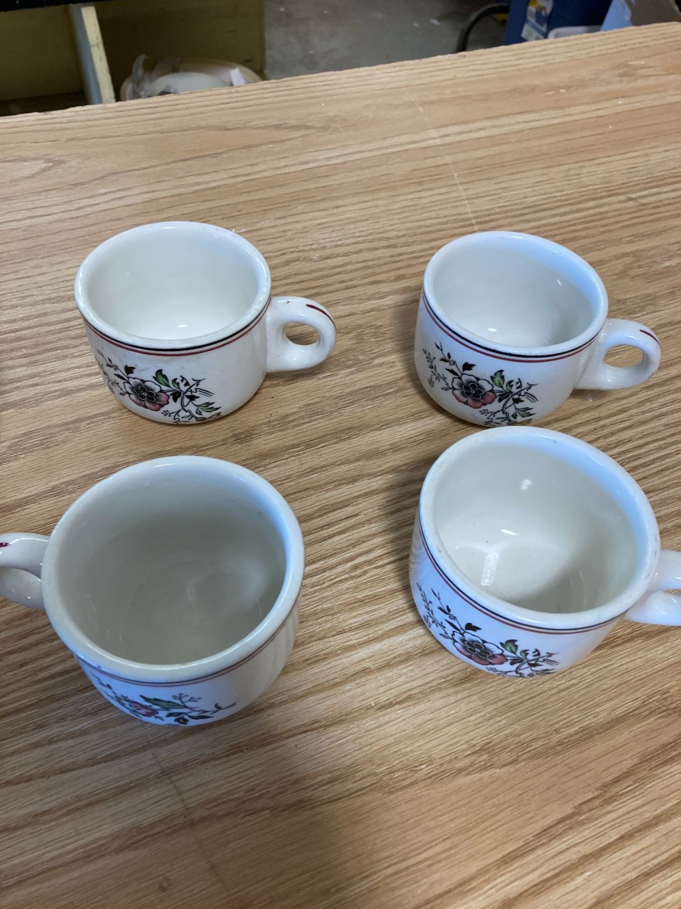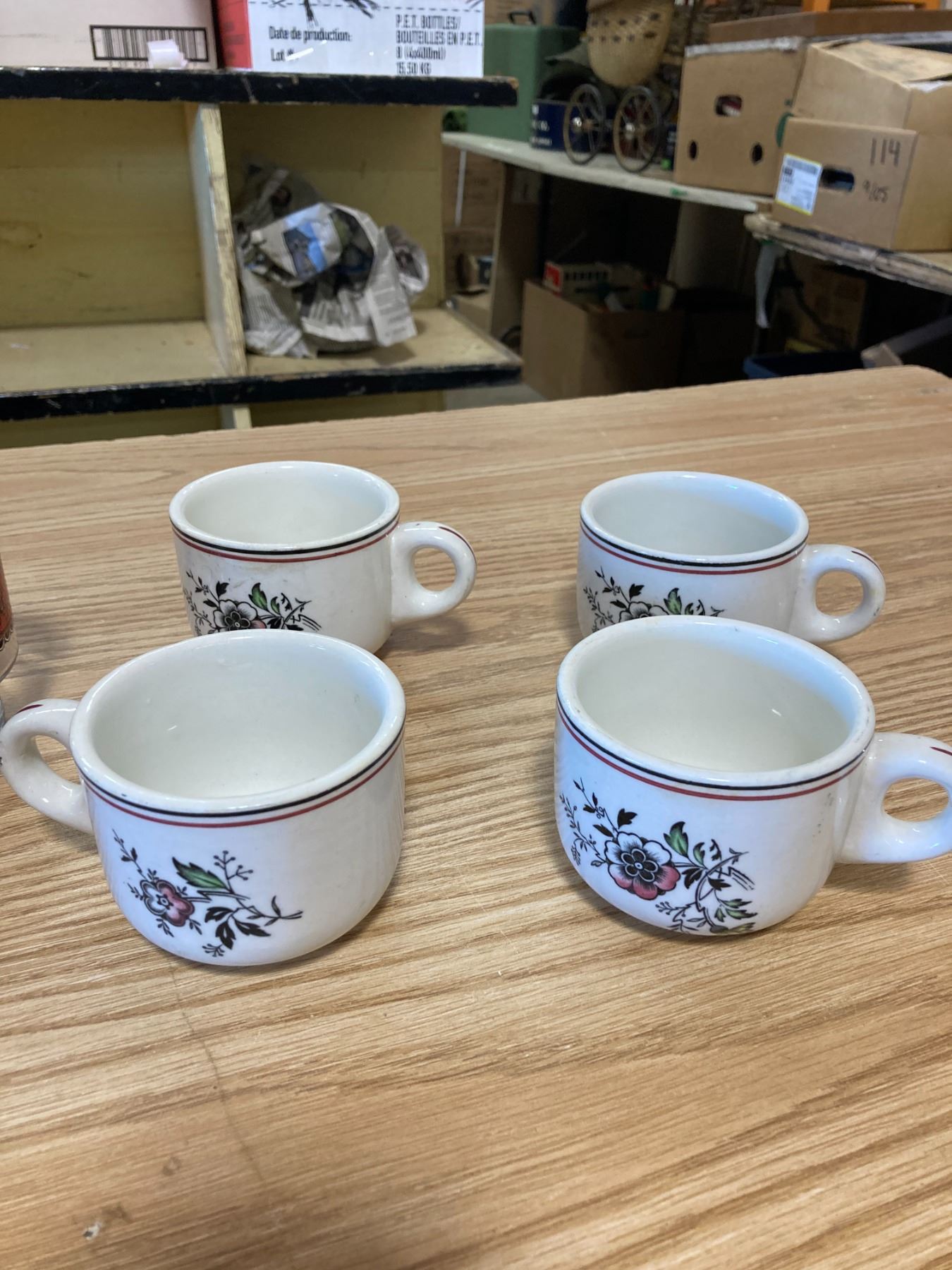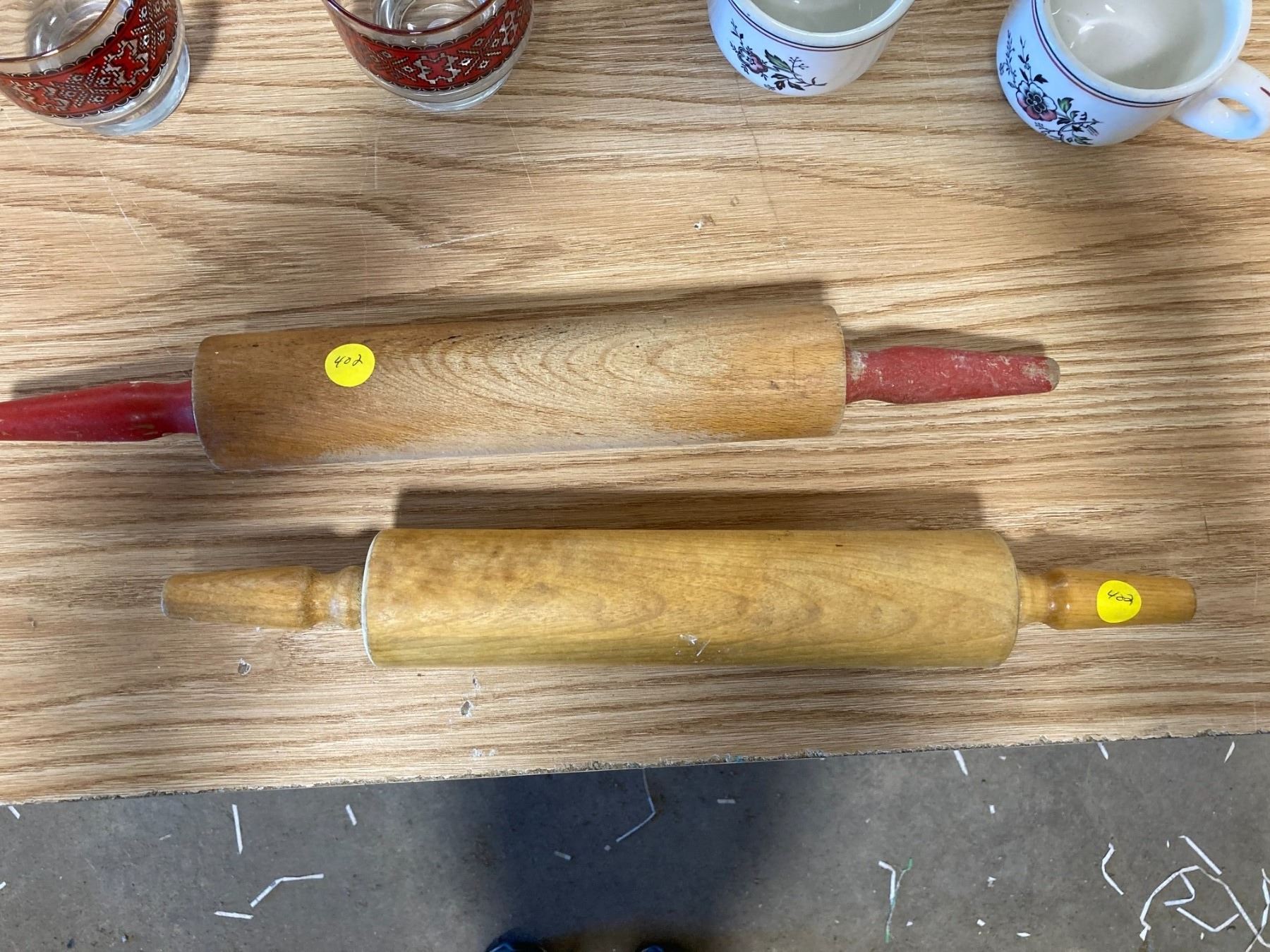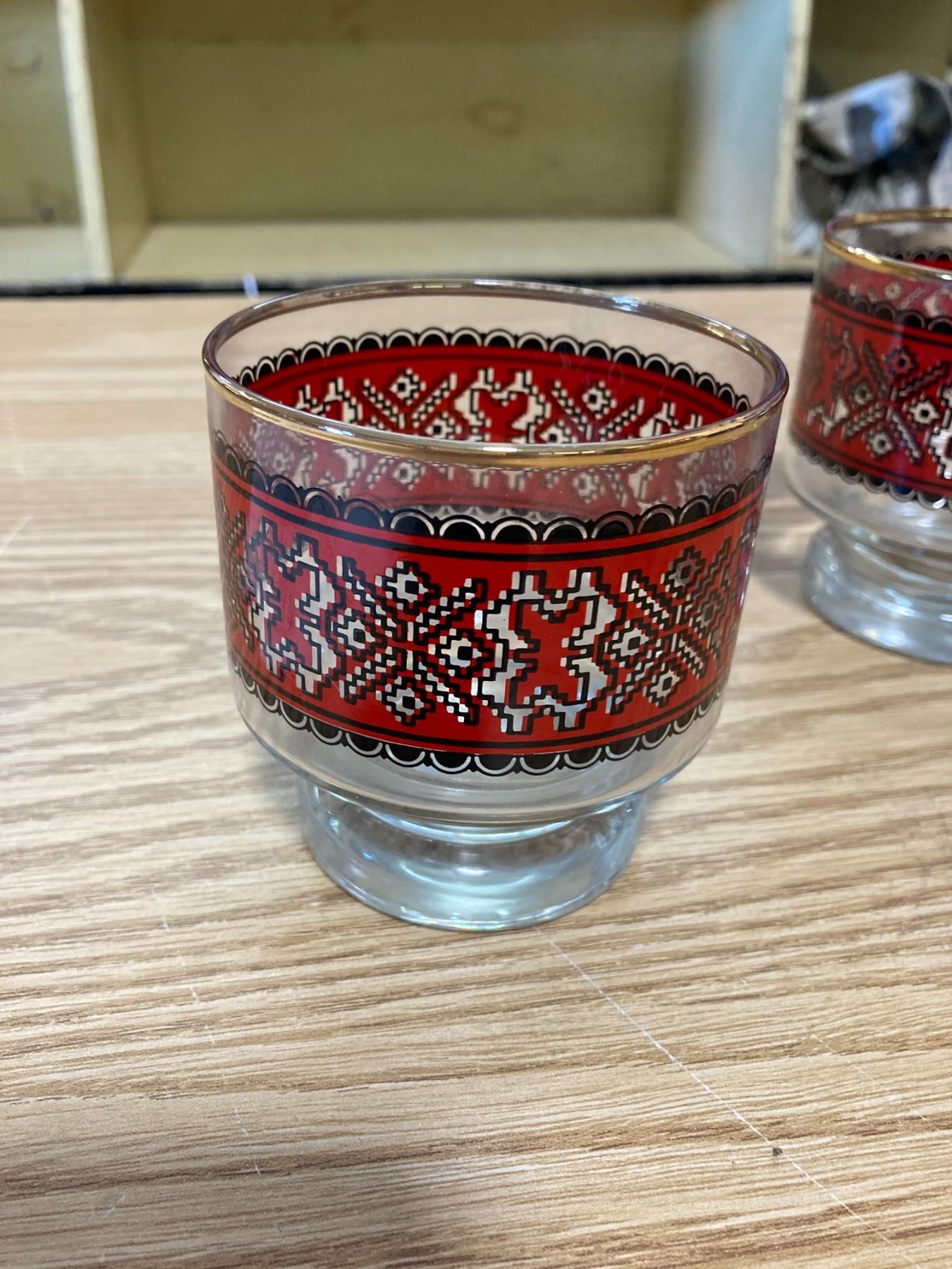 4 MUGS + 4 GLASSES RED UKRANIAN + 2 ROLLING PINS