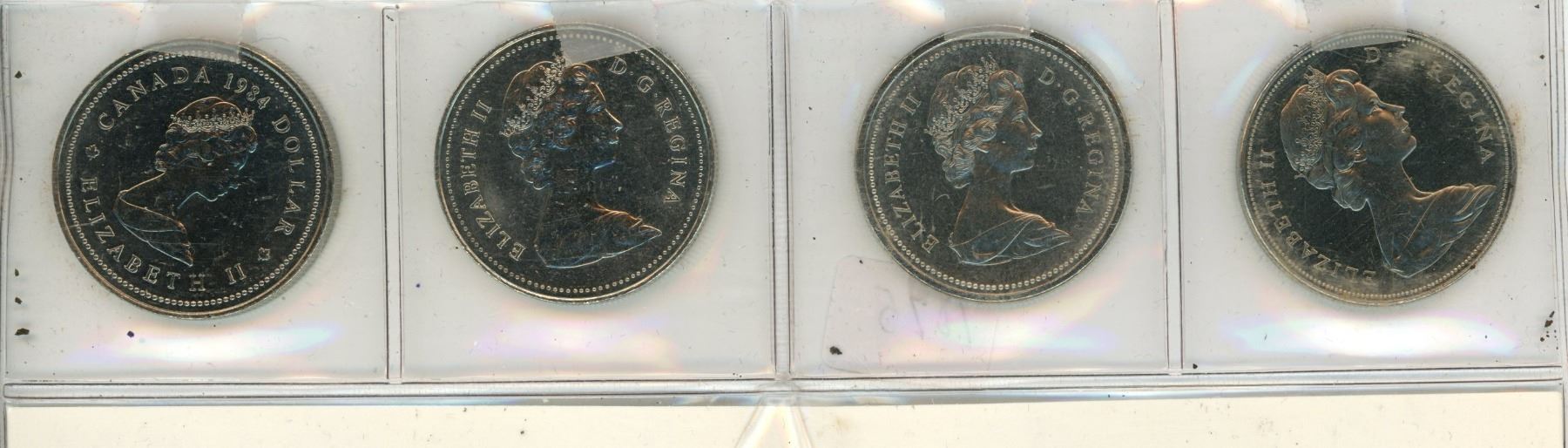 4 - Nickel $1 Cons 1968,1975,1984 & J.Cartier 1984 UNC