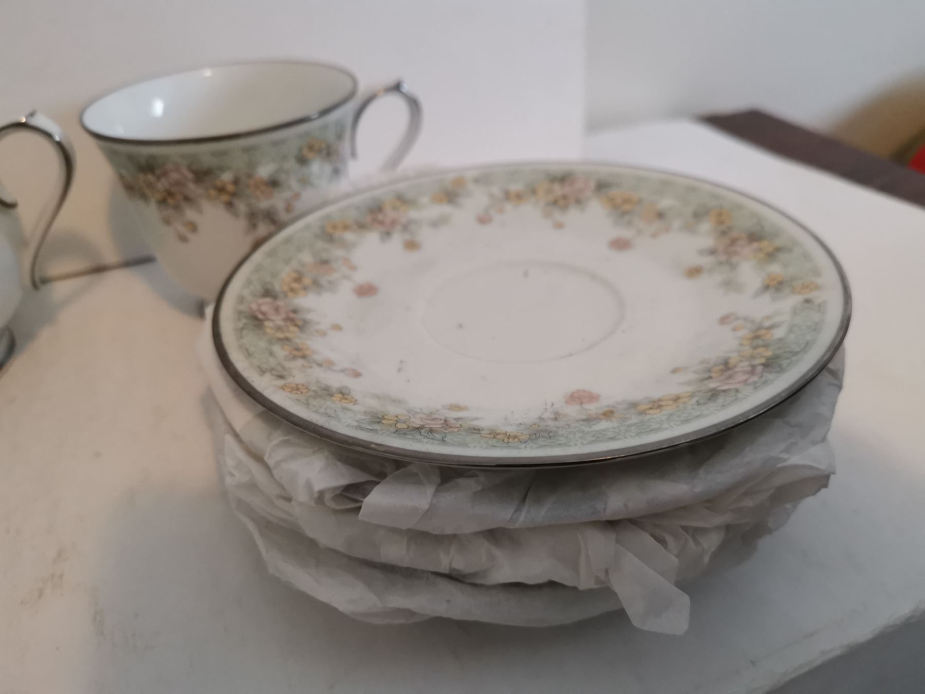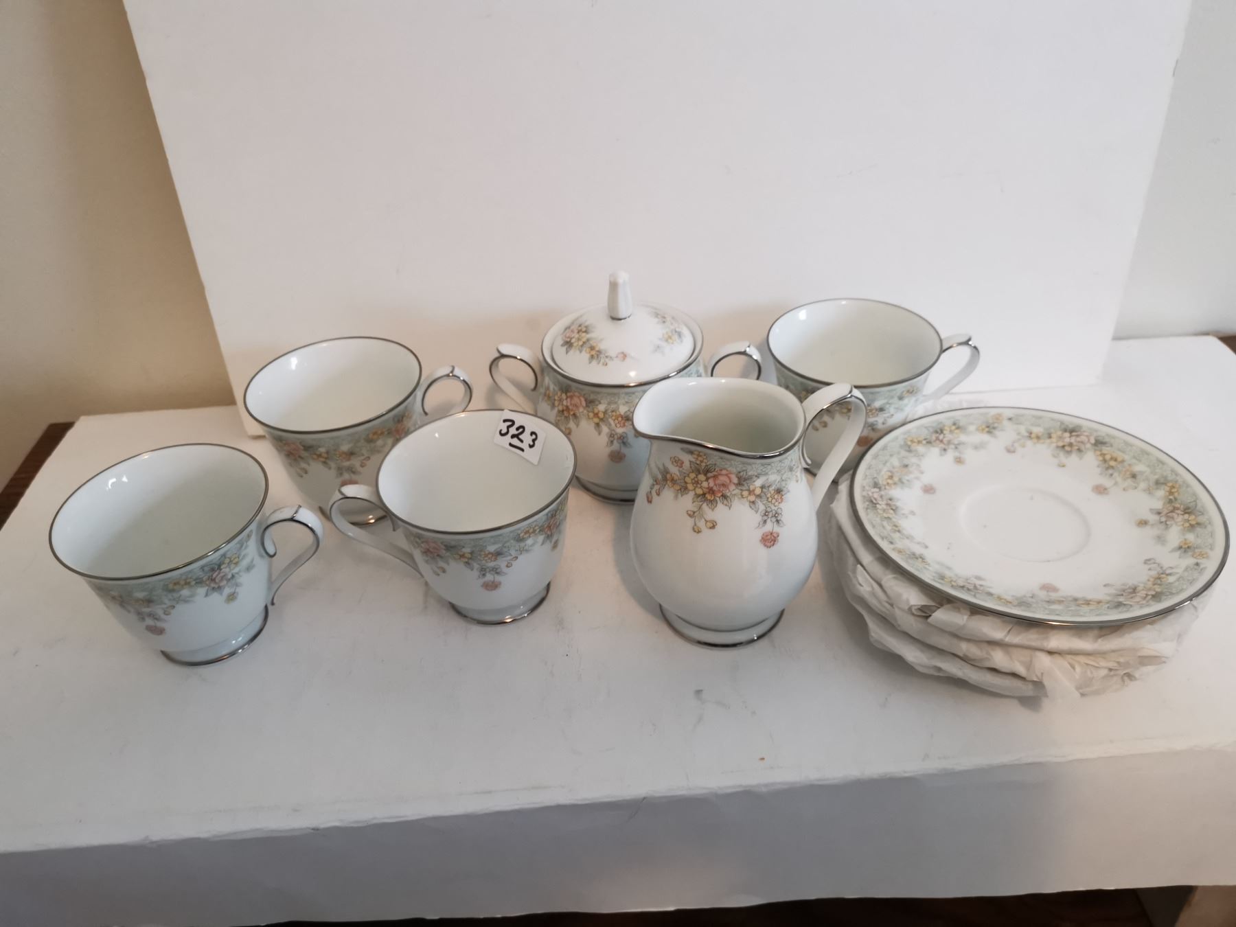 (4) Noritake Cups and Saucers w/ Cream & Sugar Bowl