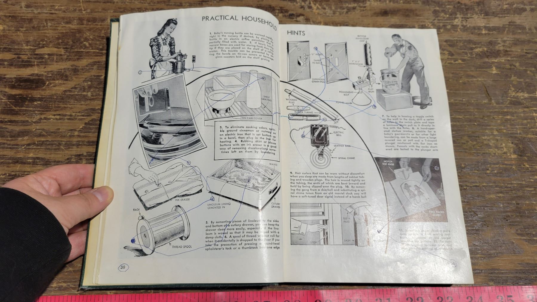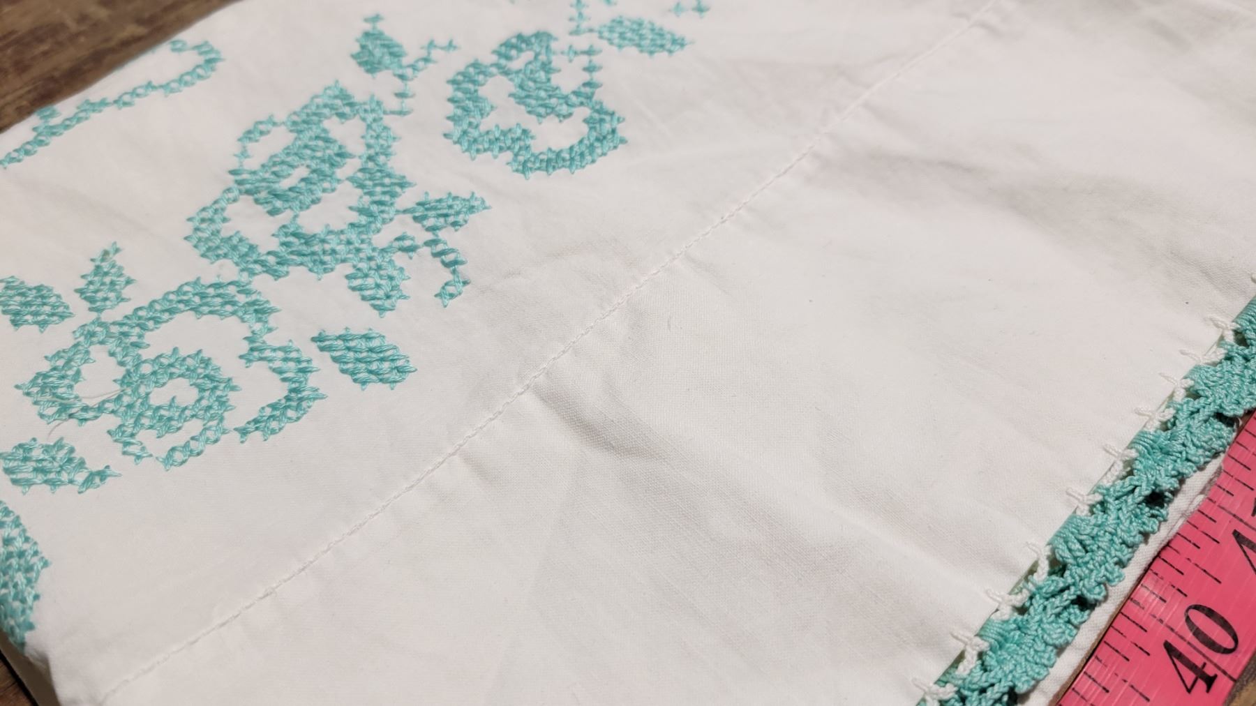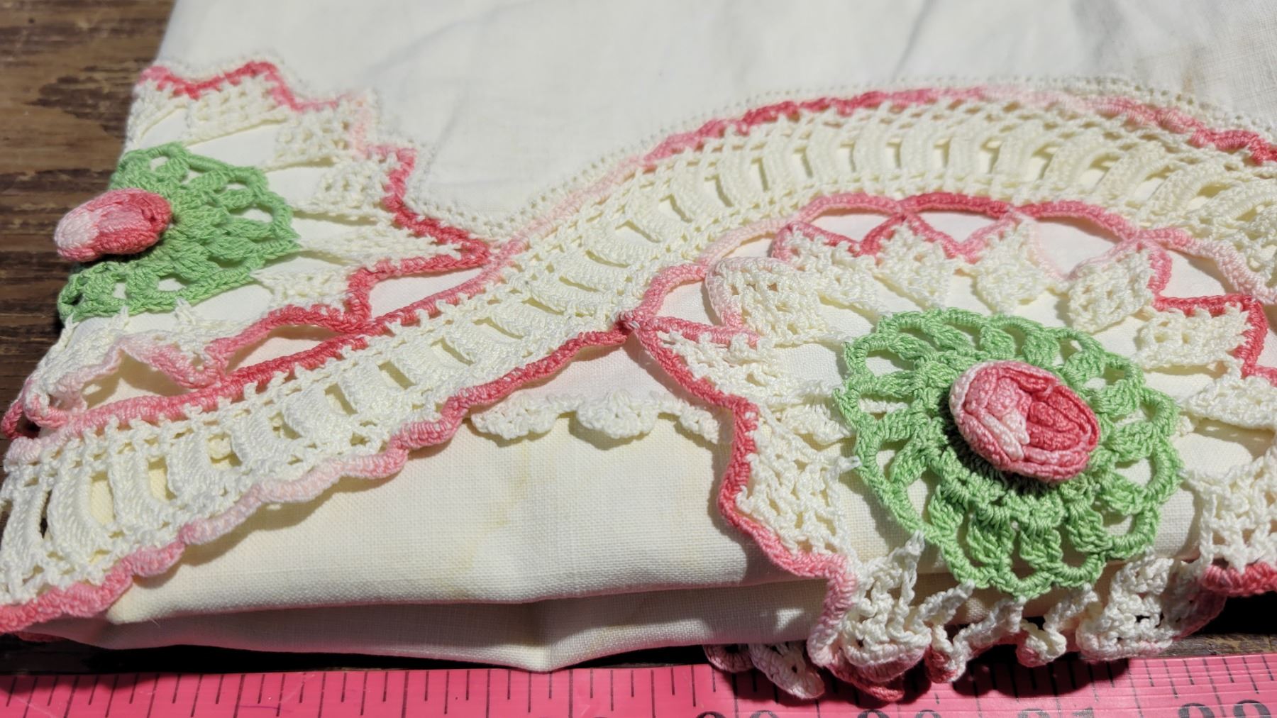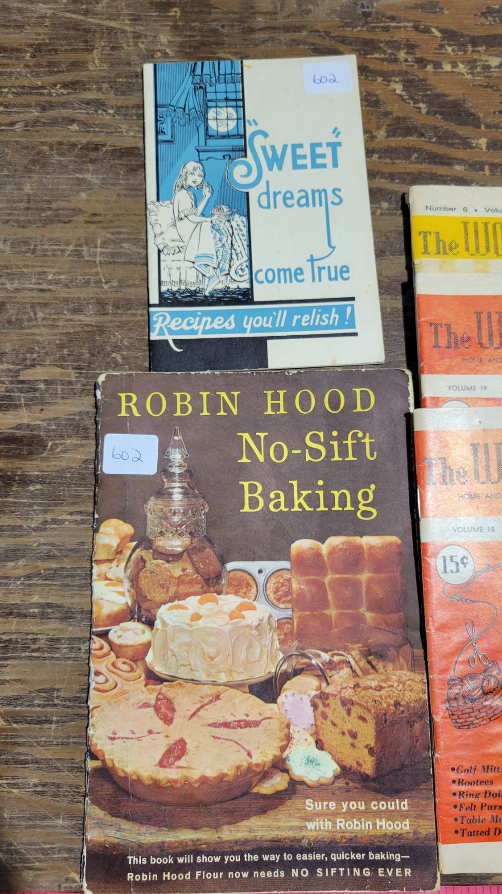 4 Old Home Making Books 1940’s, 12 The Workbasket Magazines 1950-1960, 2 Hand Crochet/Cross Stitched Pillow Cases