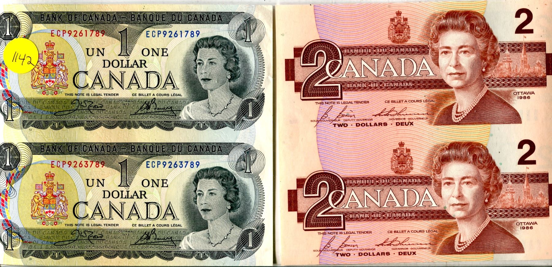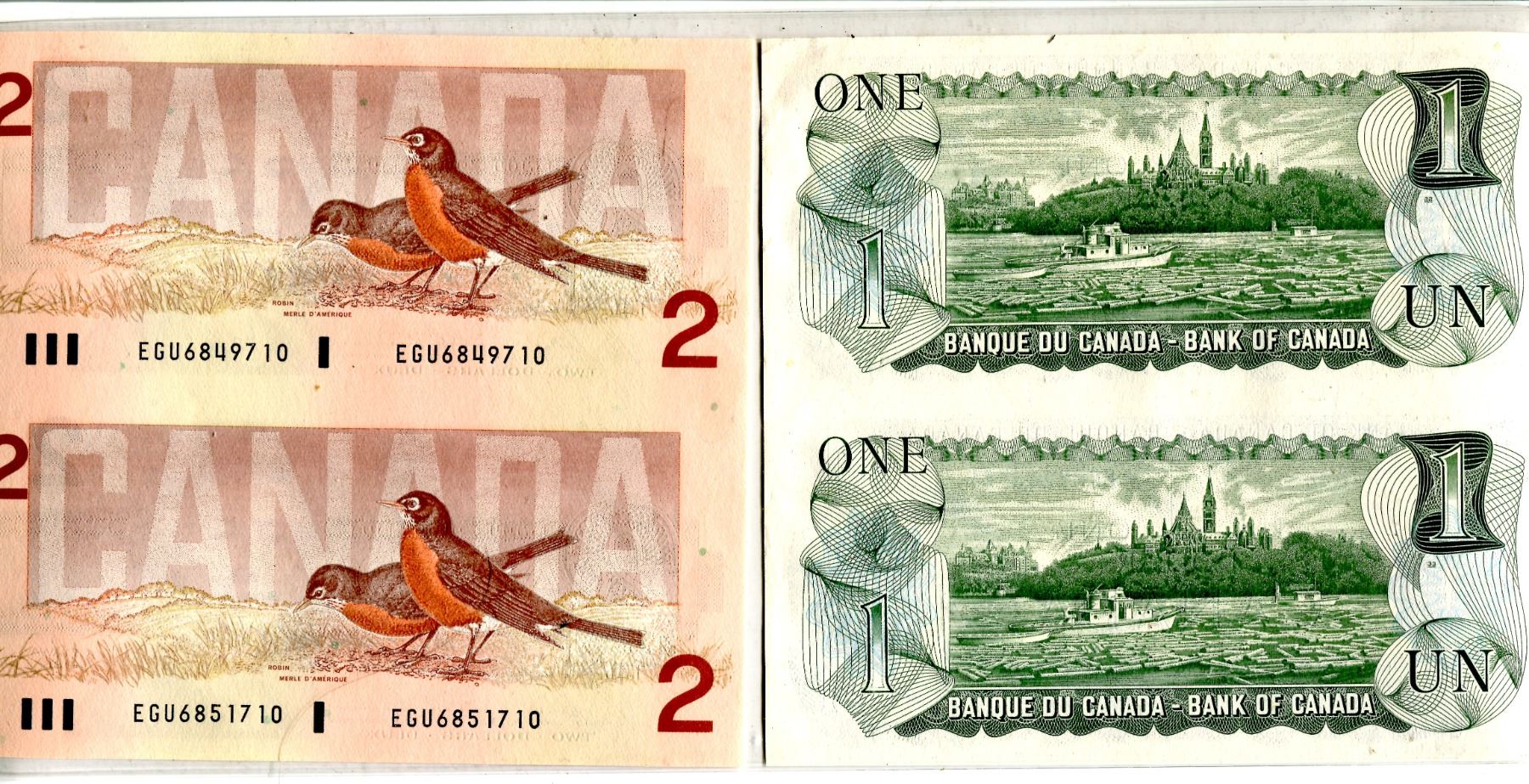 4 Pair Uncut 1973 $1 and Par of 1986 $2 Bills Ser. # 789 and 710 - 2x 8000 Apart
