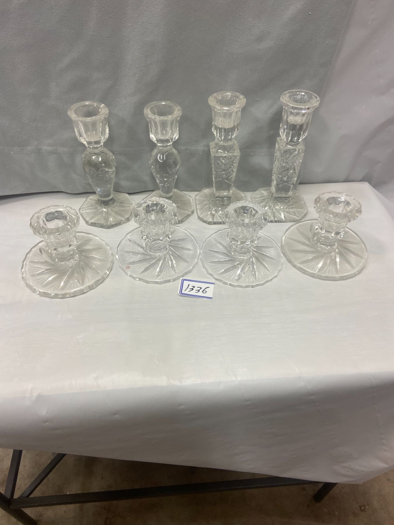 4 Pair of Crystal Candle Holders 2 1/2, 5 1/2, and 6" Tall