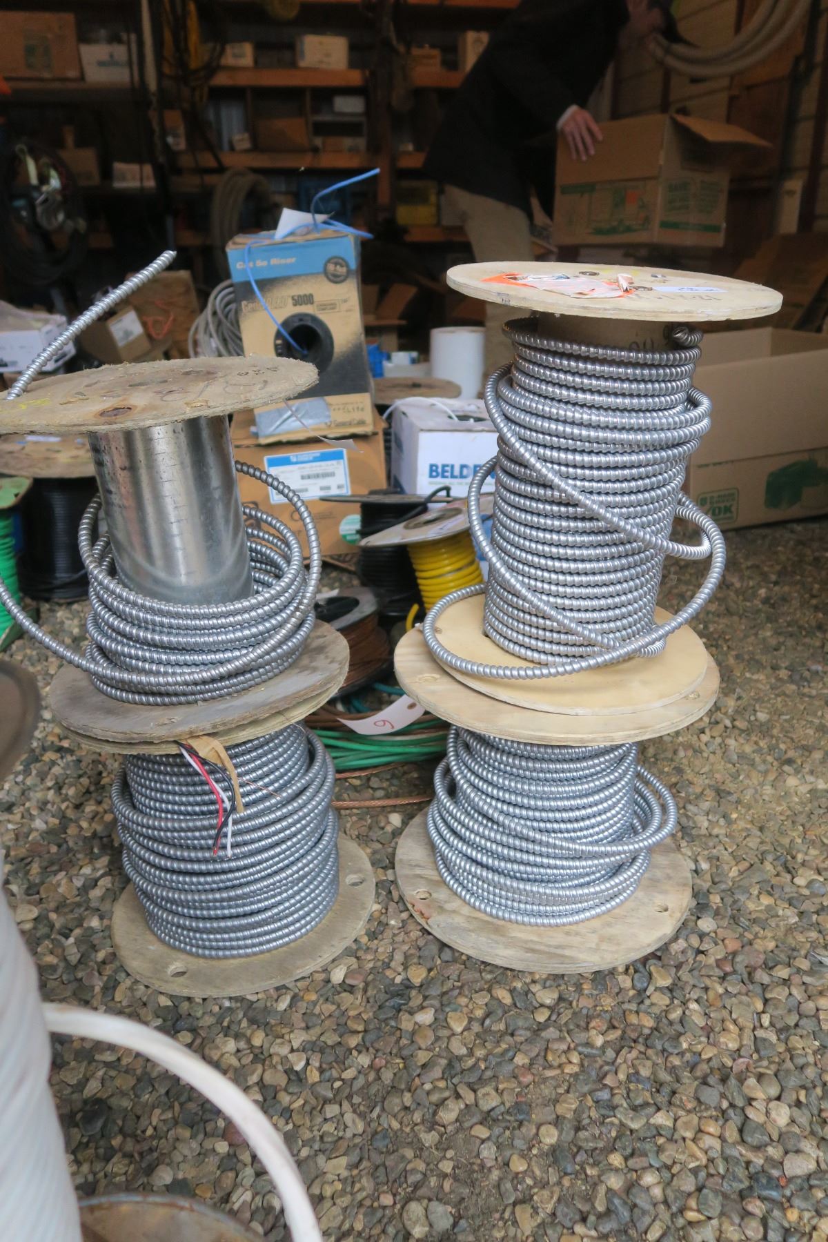 4 Rolls of Metal Sheath Wire: 12-2 (30ft.), 12-3 (70ft), 14-2 (75ft), 14-3 (150ft) - Lengths Are Approximate