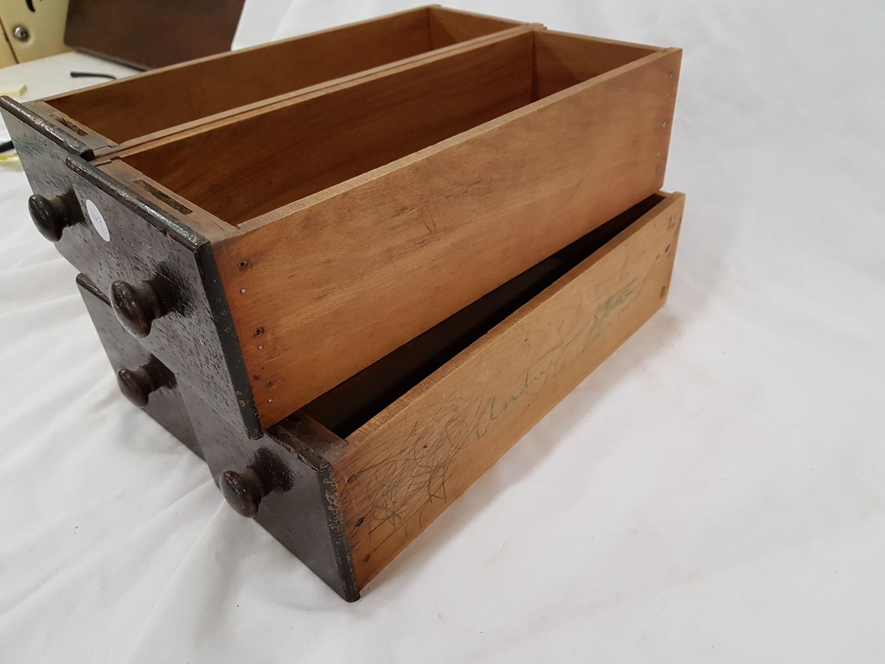 4 SEWING MACHINES, WOODEN DRAWERS