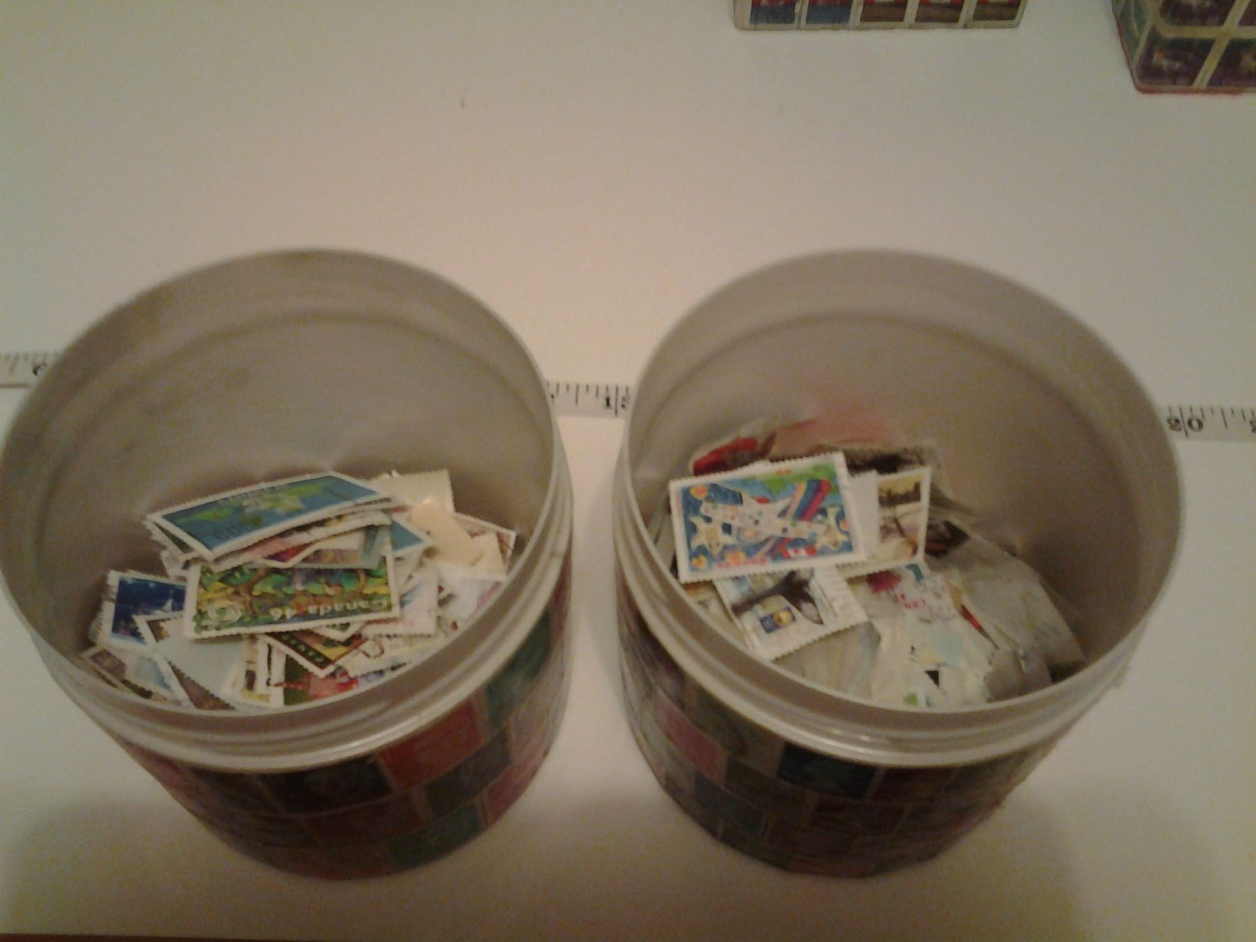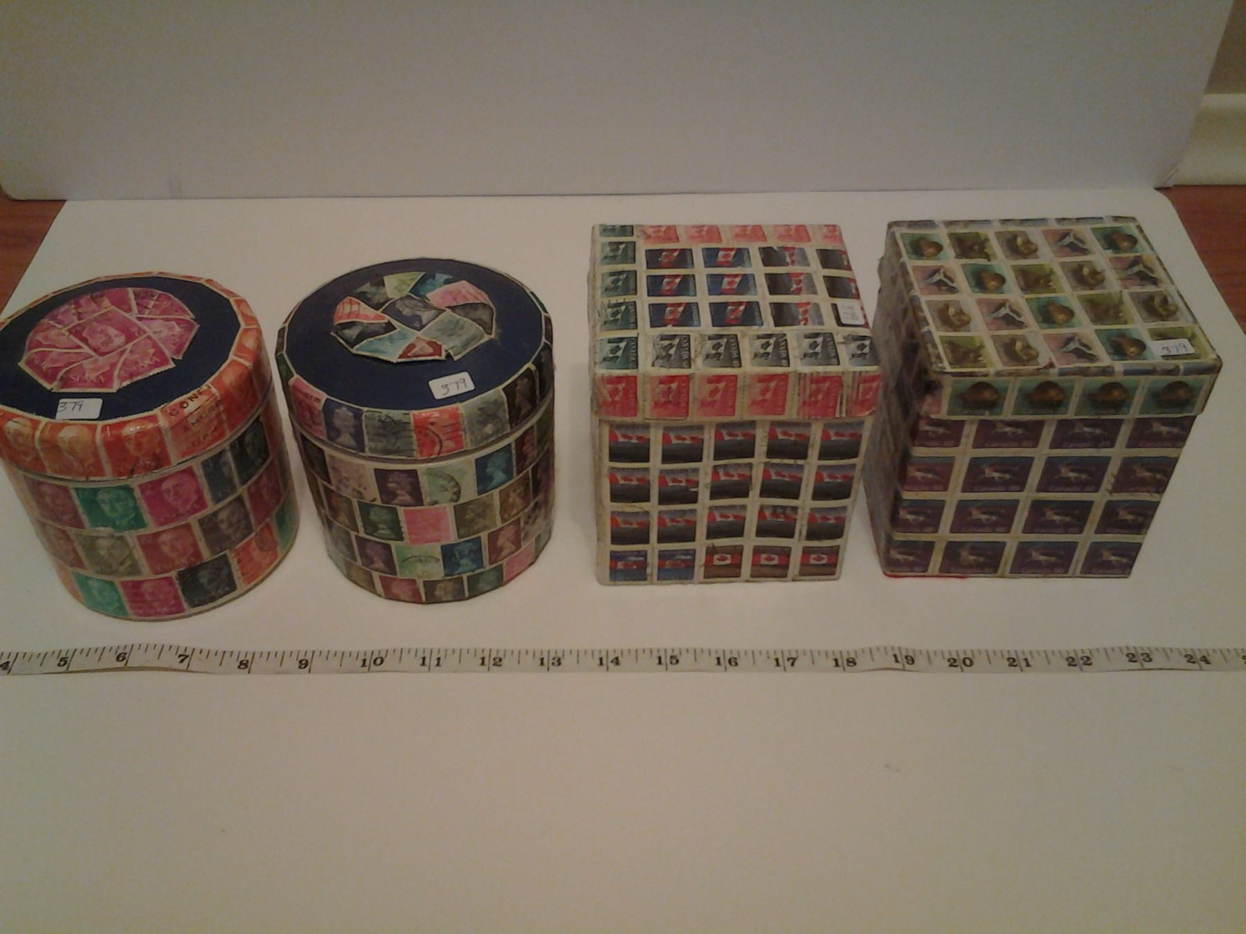 4 STAMP CONTAINERS WITH STAMPS INSIDE