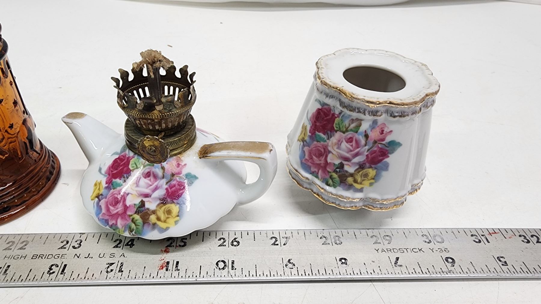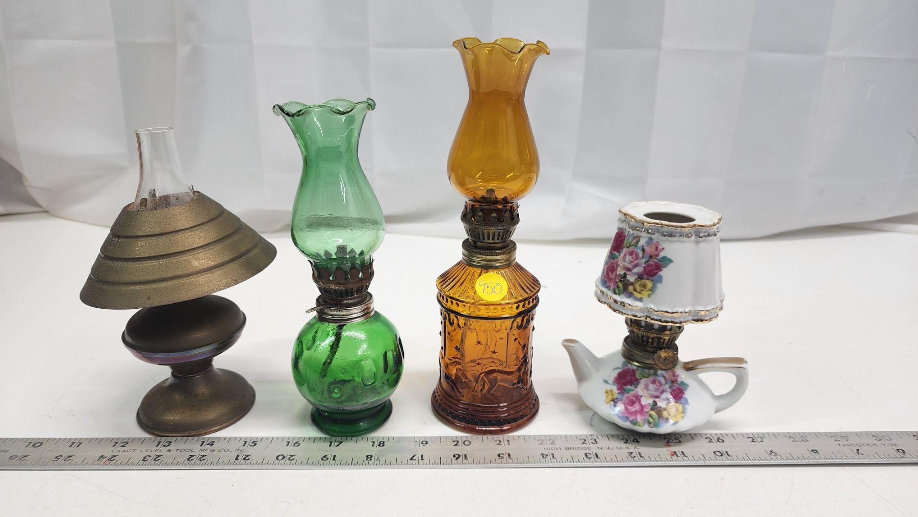 4 Small assorted oil lamps - glass, porcelain, etc