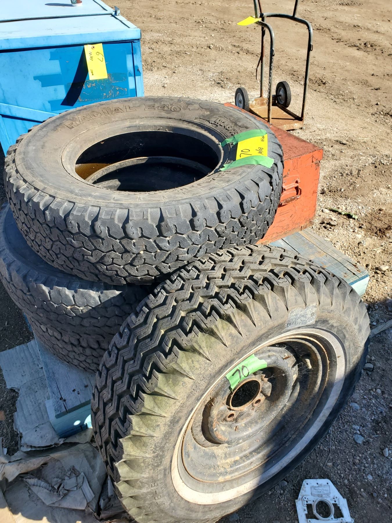 4 TIRES 1 15" C/W RIM AND 3 16"