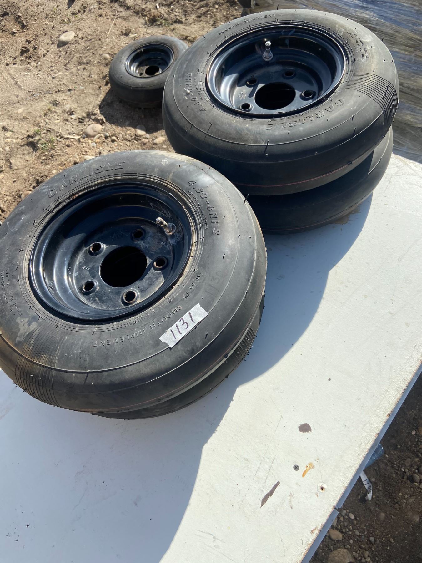 (4) TIRES, 4.80 8NHS GARLISLE IMPLEMET 5 BOLT RIMS