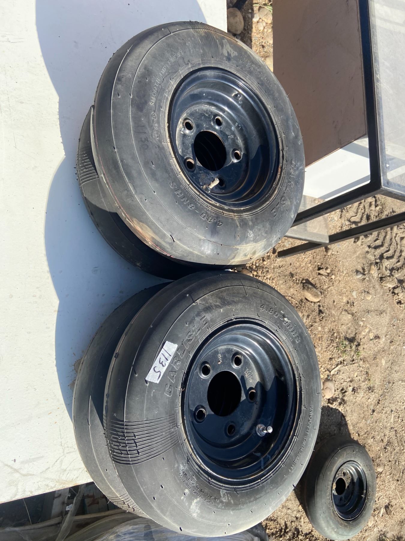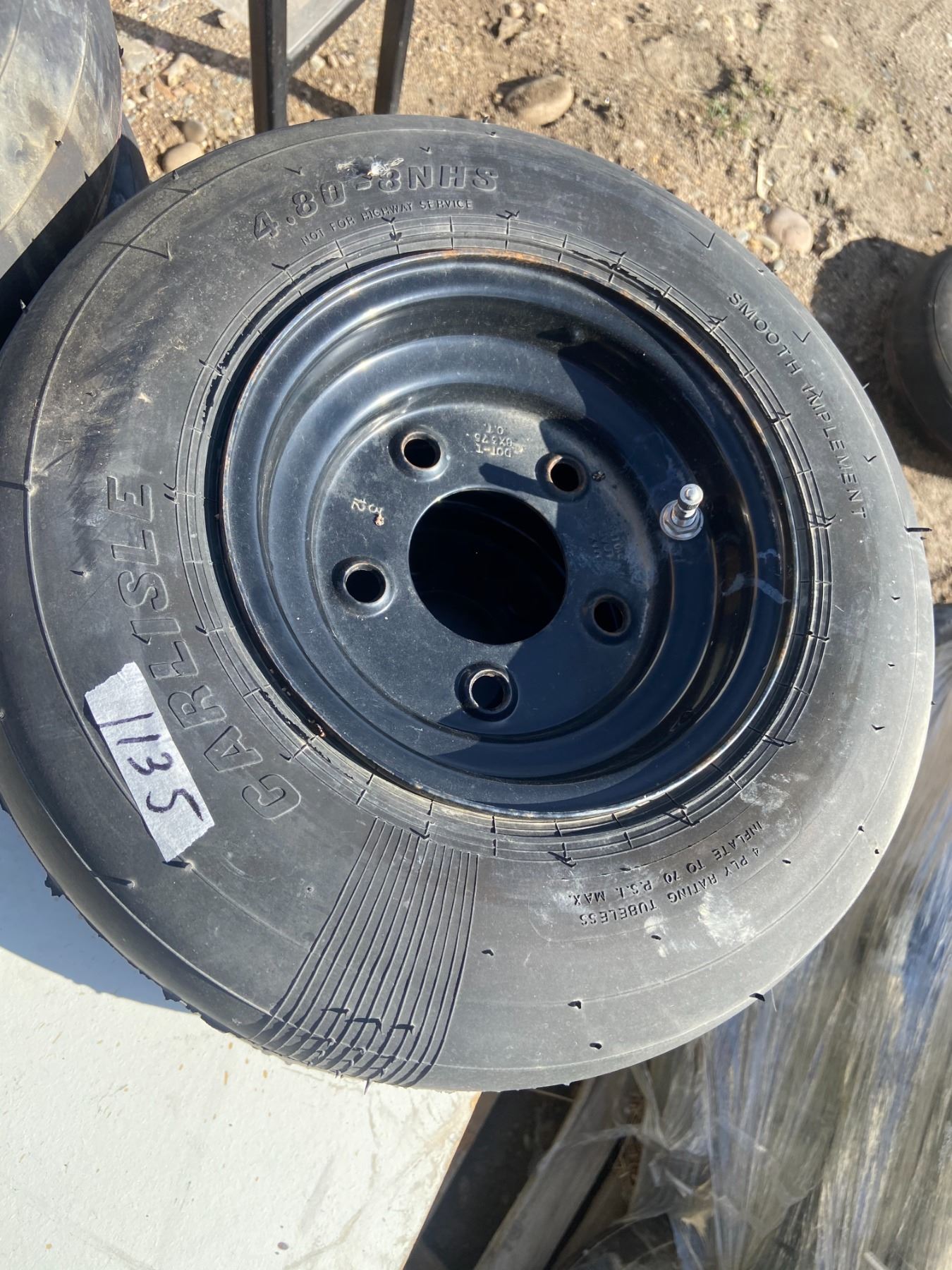 (4) TIRES, 4.80 8NHS GARLISLE IMPLEMET 5 BOLT RIMS