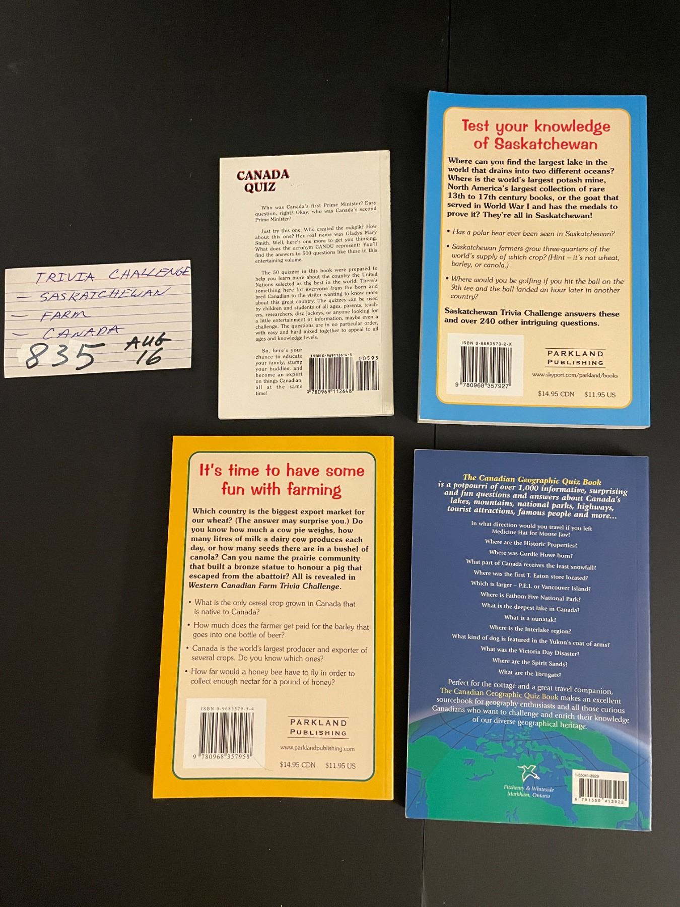 4 Trivia books - Saskatchewan, Farm, Canada