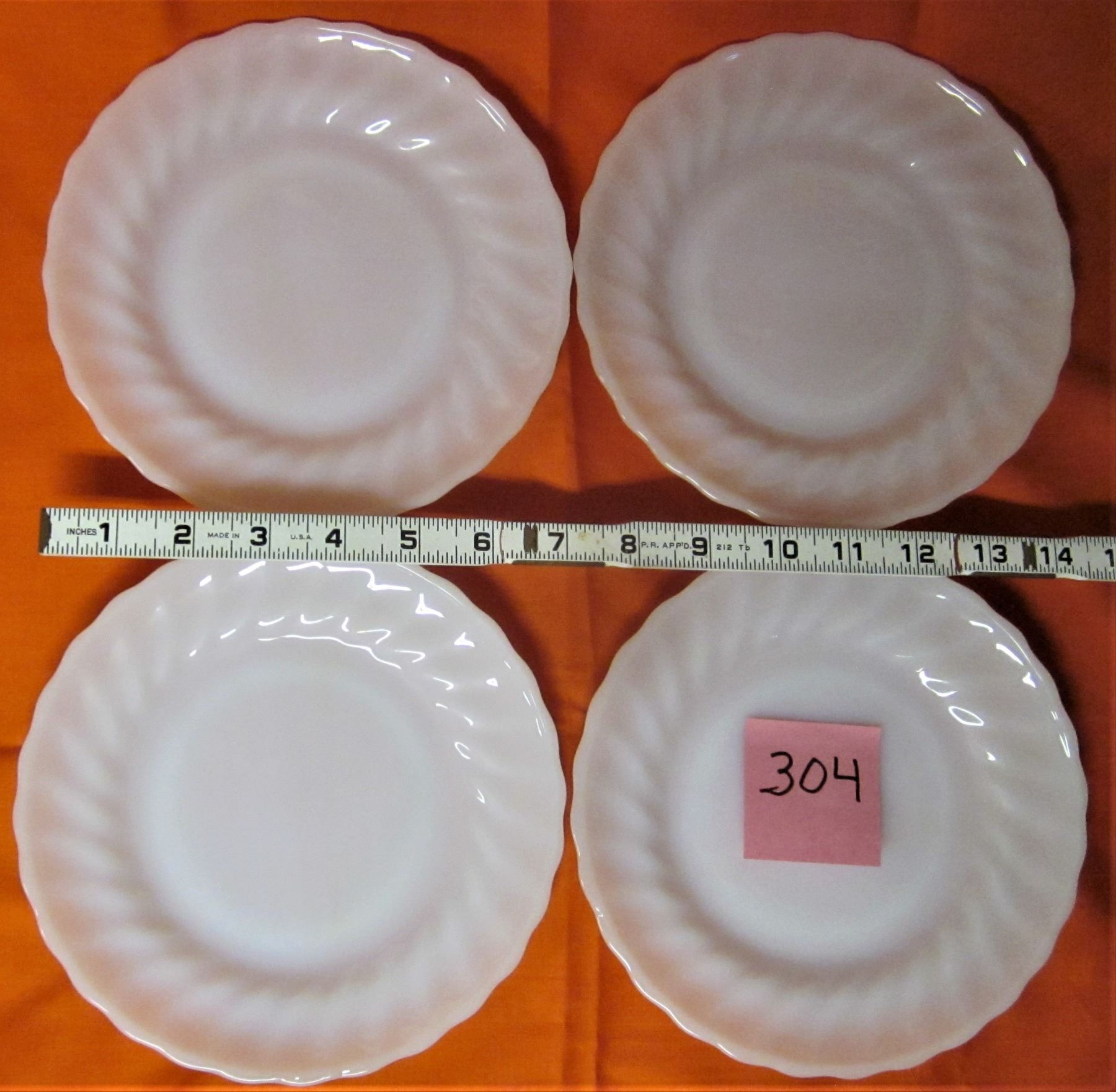 4 VINTAGE 7 1/2 FIRE KING SWIRL PATTERN WHITE SANDWICH PLATE