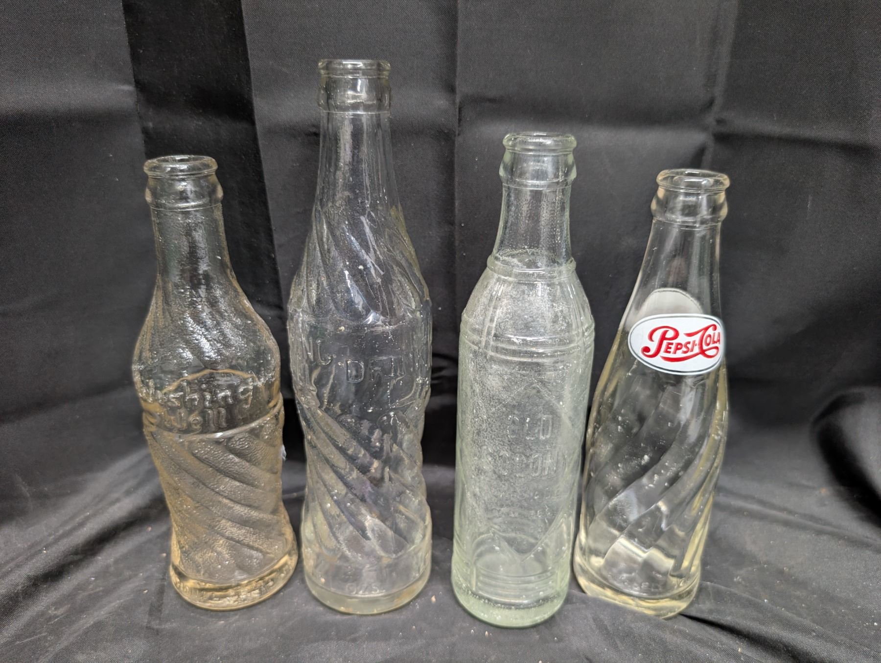 (4) Vintage Pop Bottles (Pepsi, Wishing Well, Old Colony )