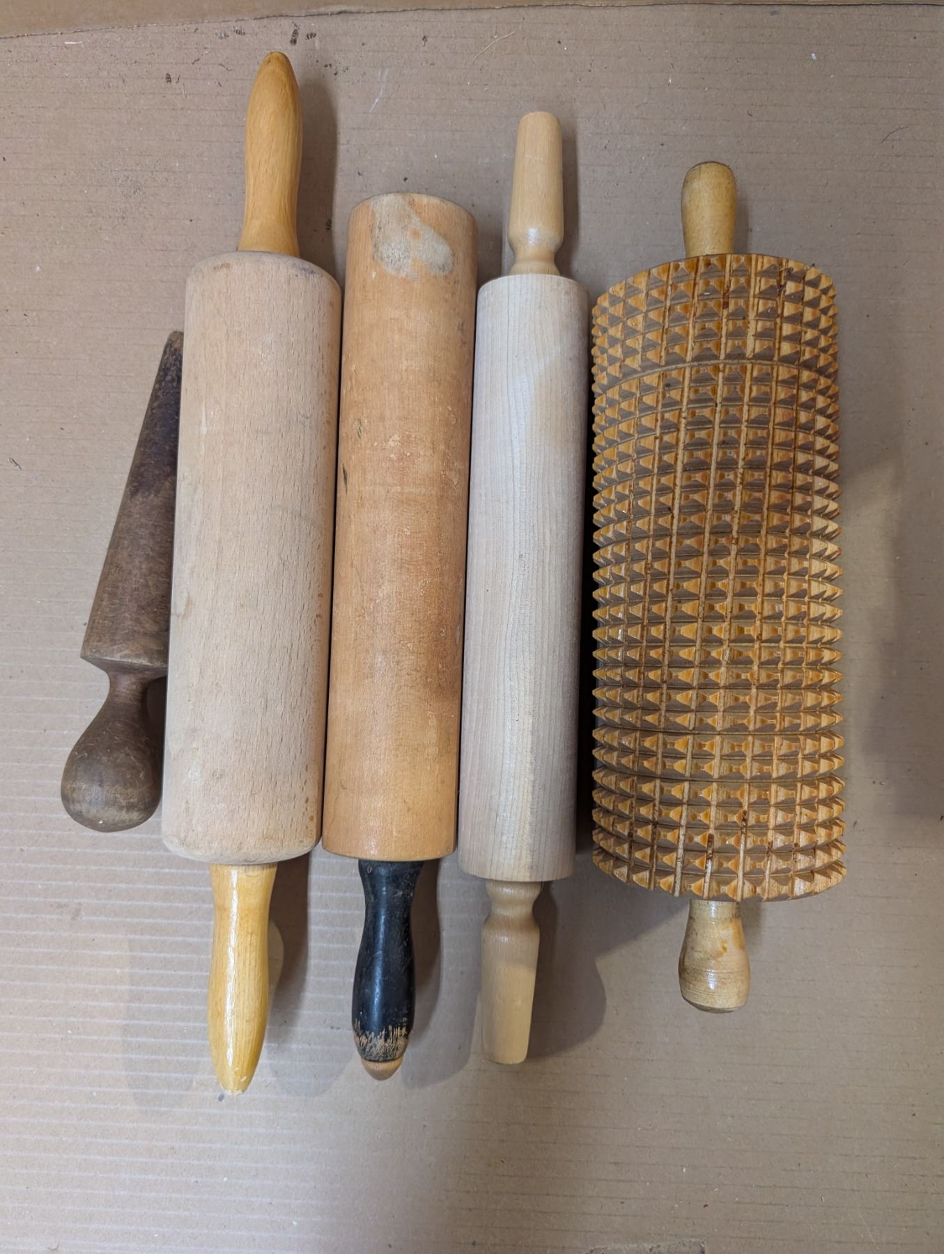 (4) Vintage Wooden Rolling Pins (1) Kruskal Vintage Rolling Pin and (1) Vintage Wooden Masher