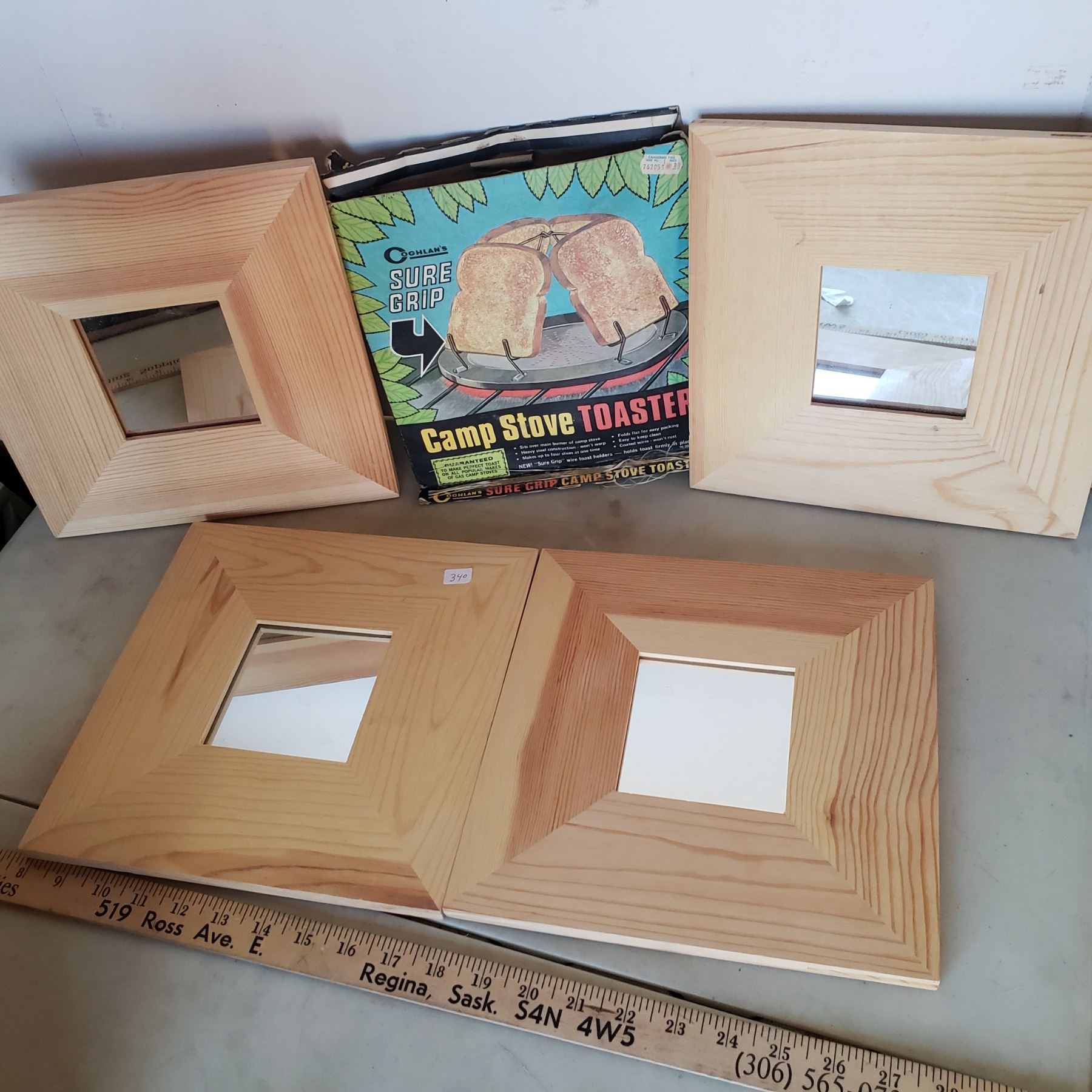 4 Wood Mirrors and campfire toaster