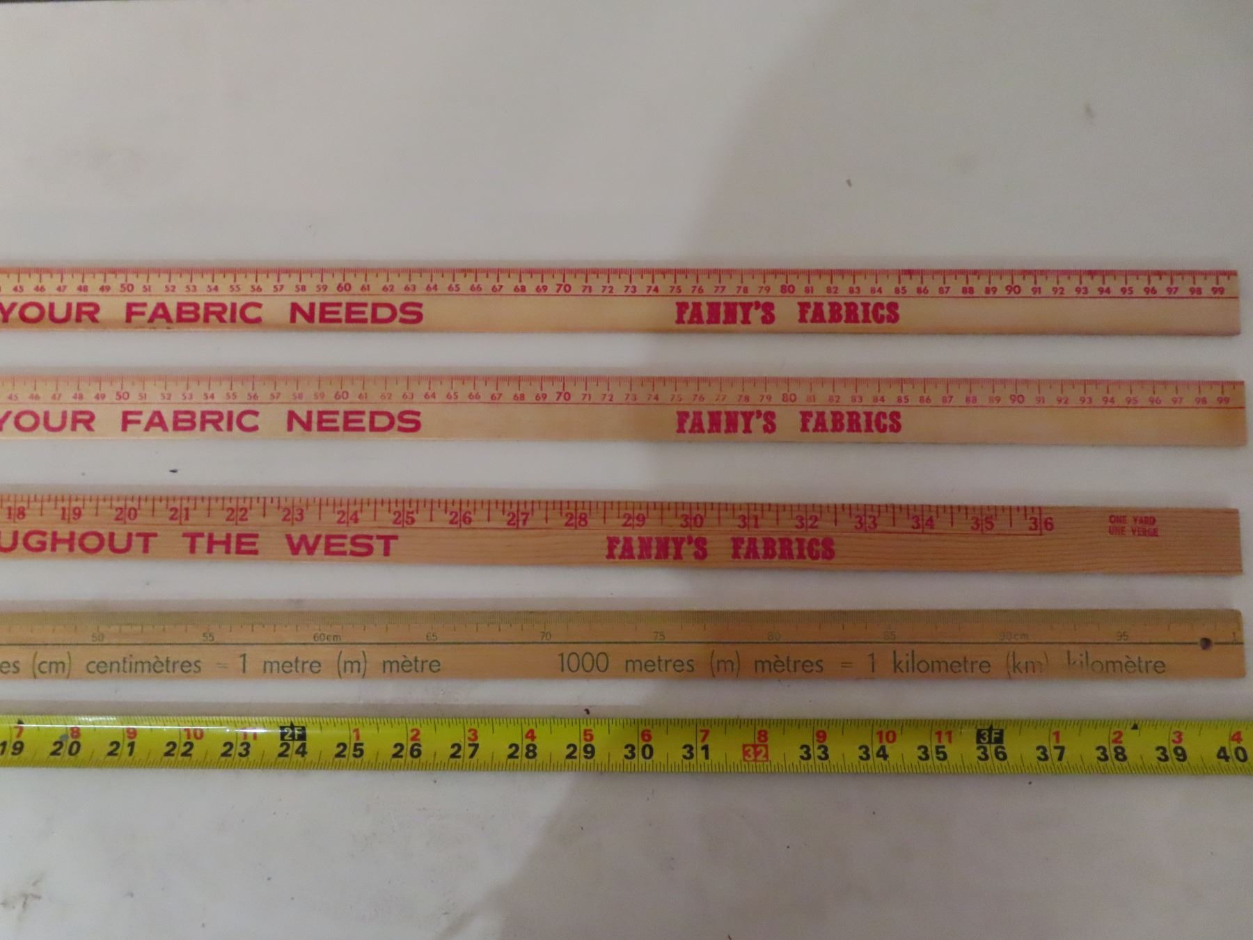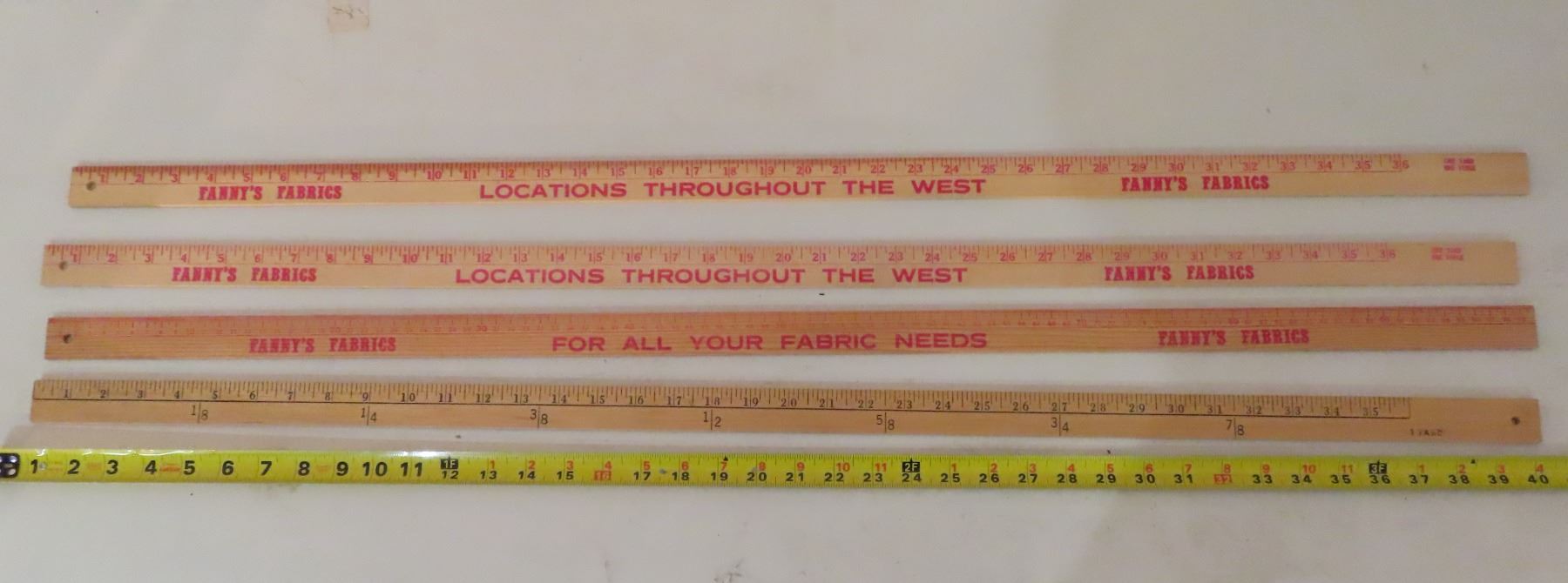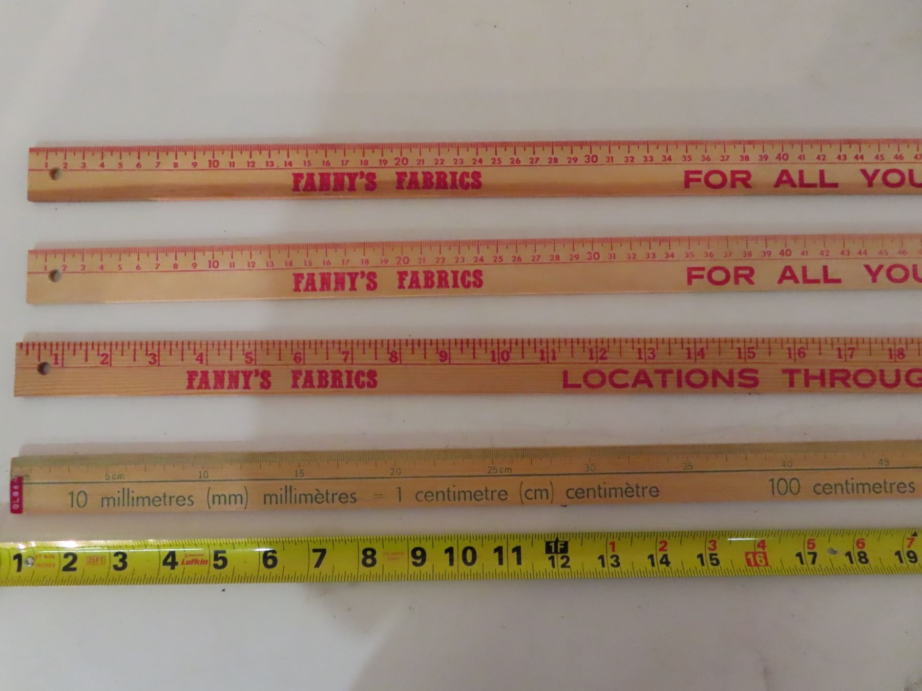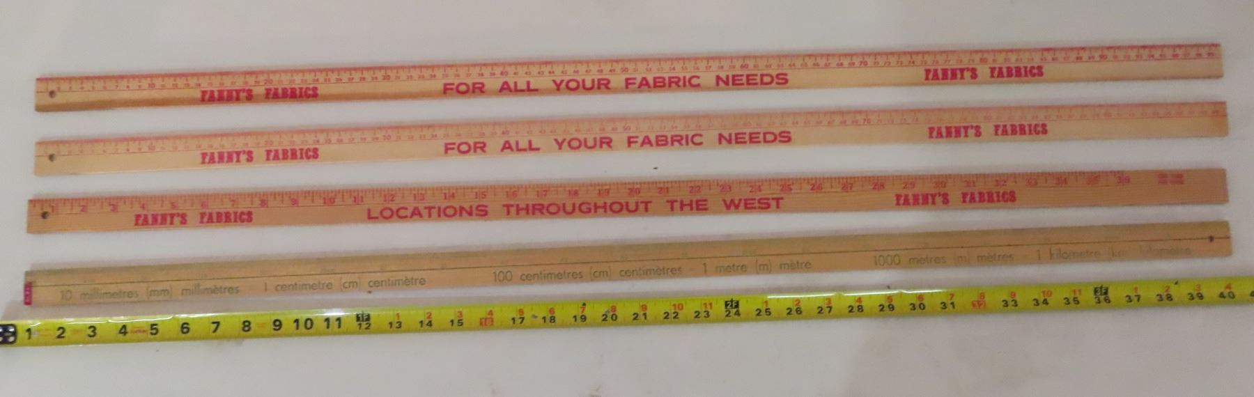 4 Wooden yard sticks - "Fanny's Fabrics"