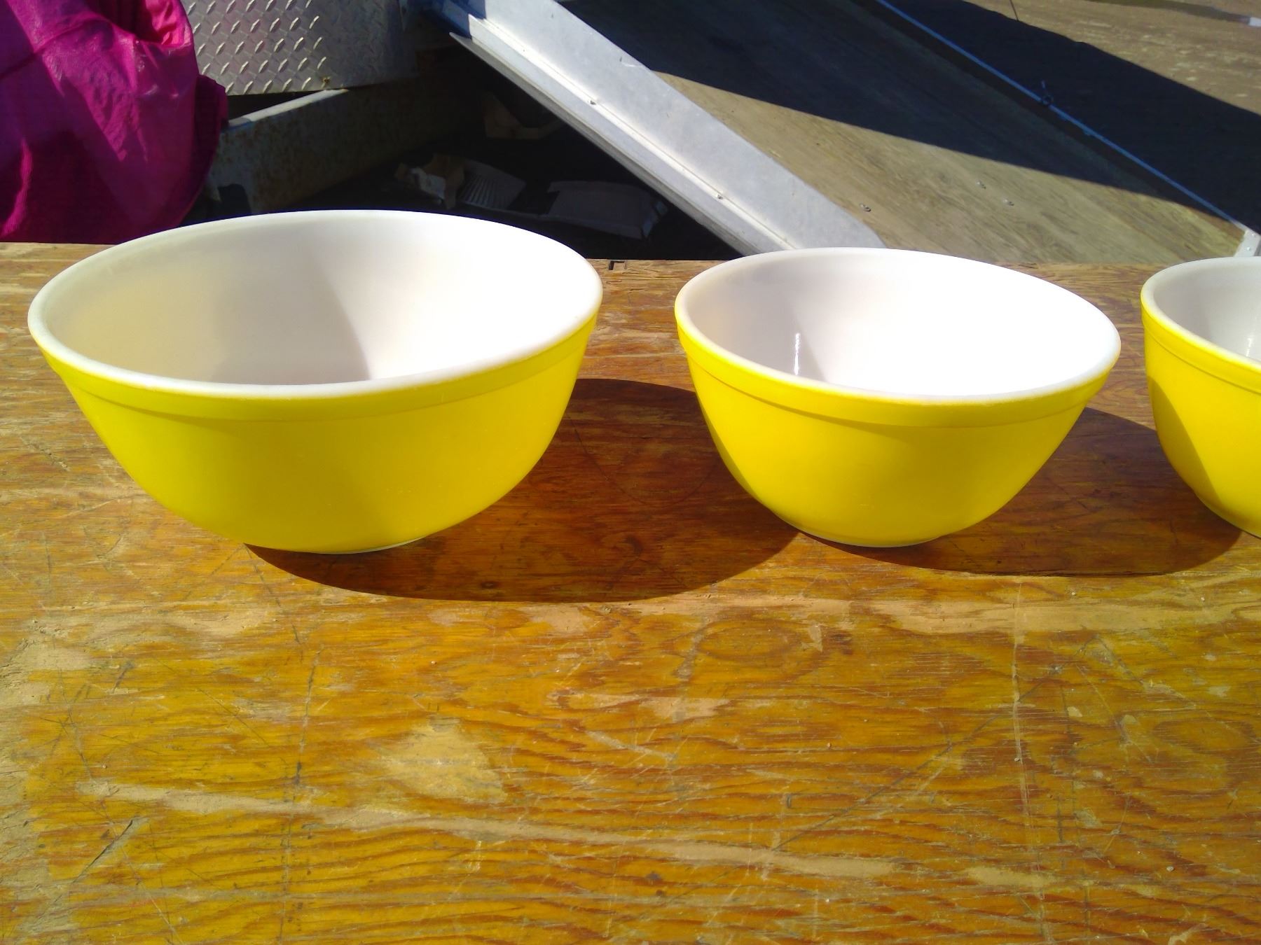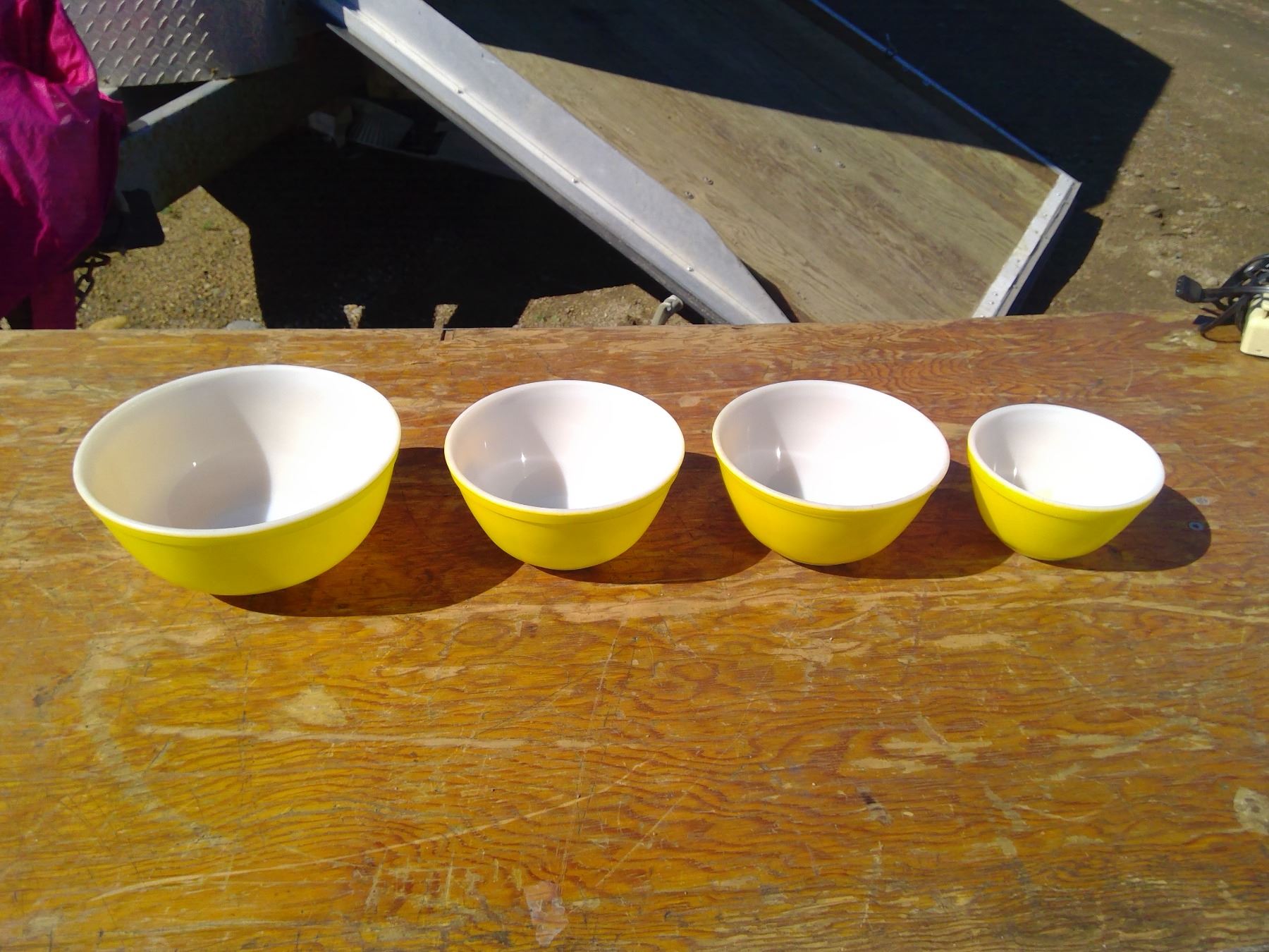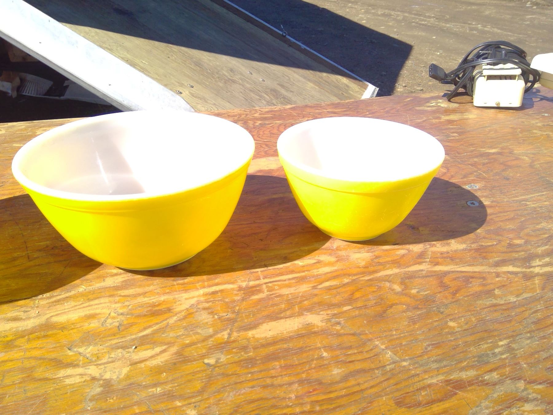4 YELLOW PYREX BOWLS