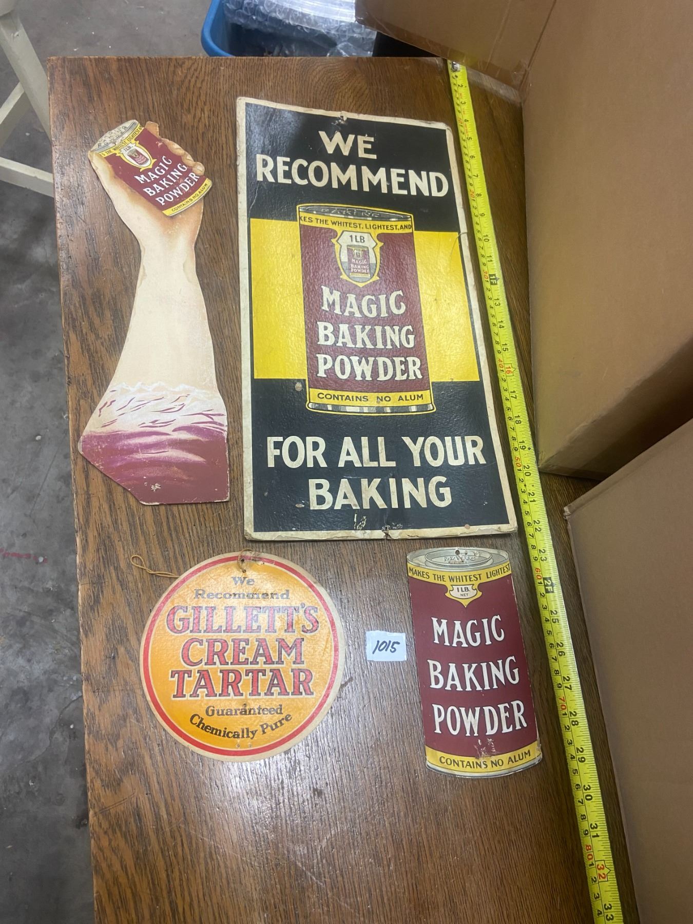 4 cardboard advertising pictures - Magic baking powder & Gillett's - General Store (3 small pc's are double sided)