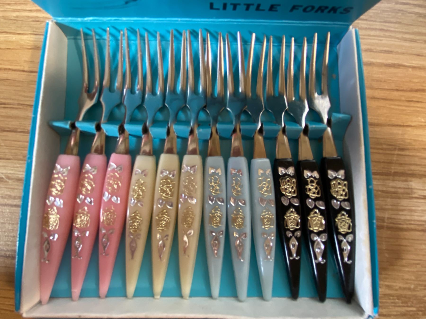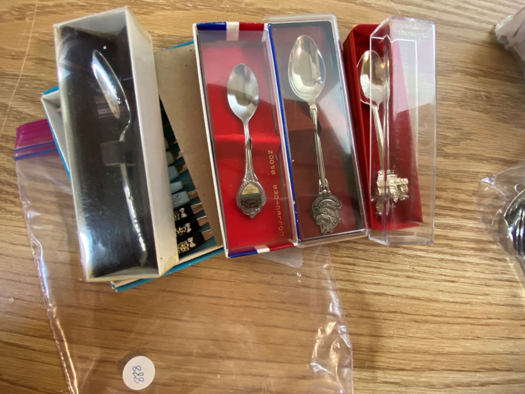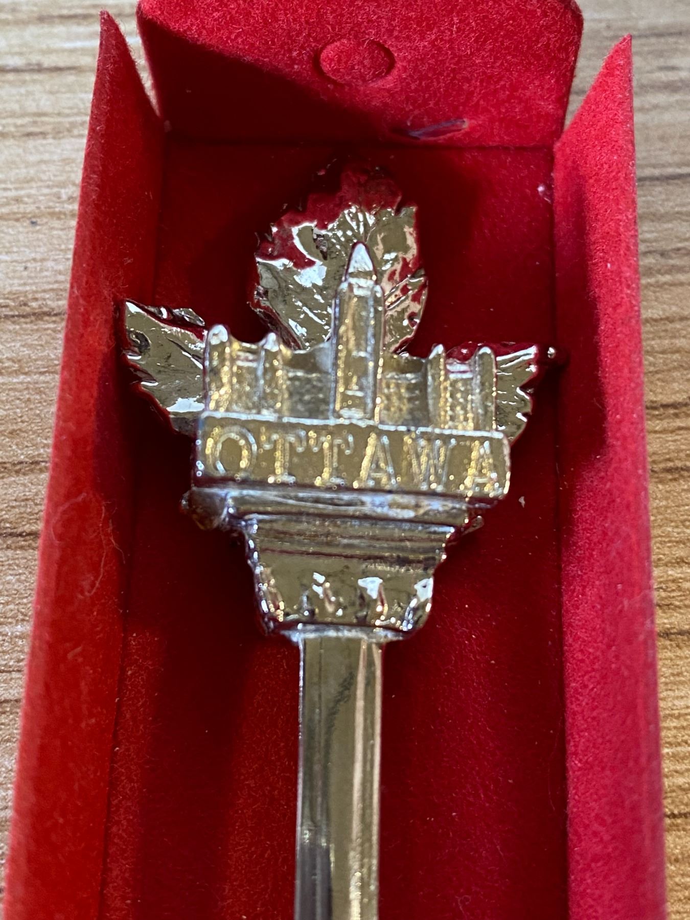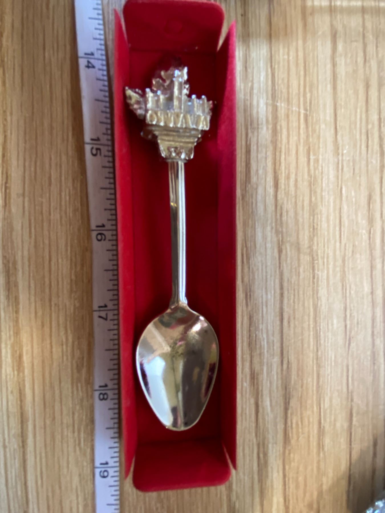 4 collector spoons and a set (12) little forks Vancouver Grouse Mtn. SkyRide, Ottawa, Golden Gate bridge San Franisco, Commemorative spoon Roberta Tilton 1997-98. Little forks are special quality stainless steel.