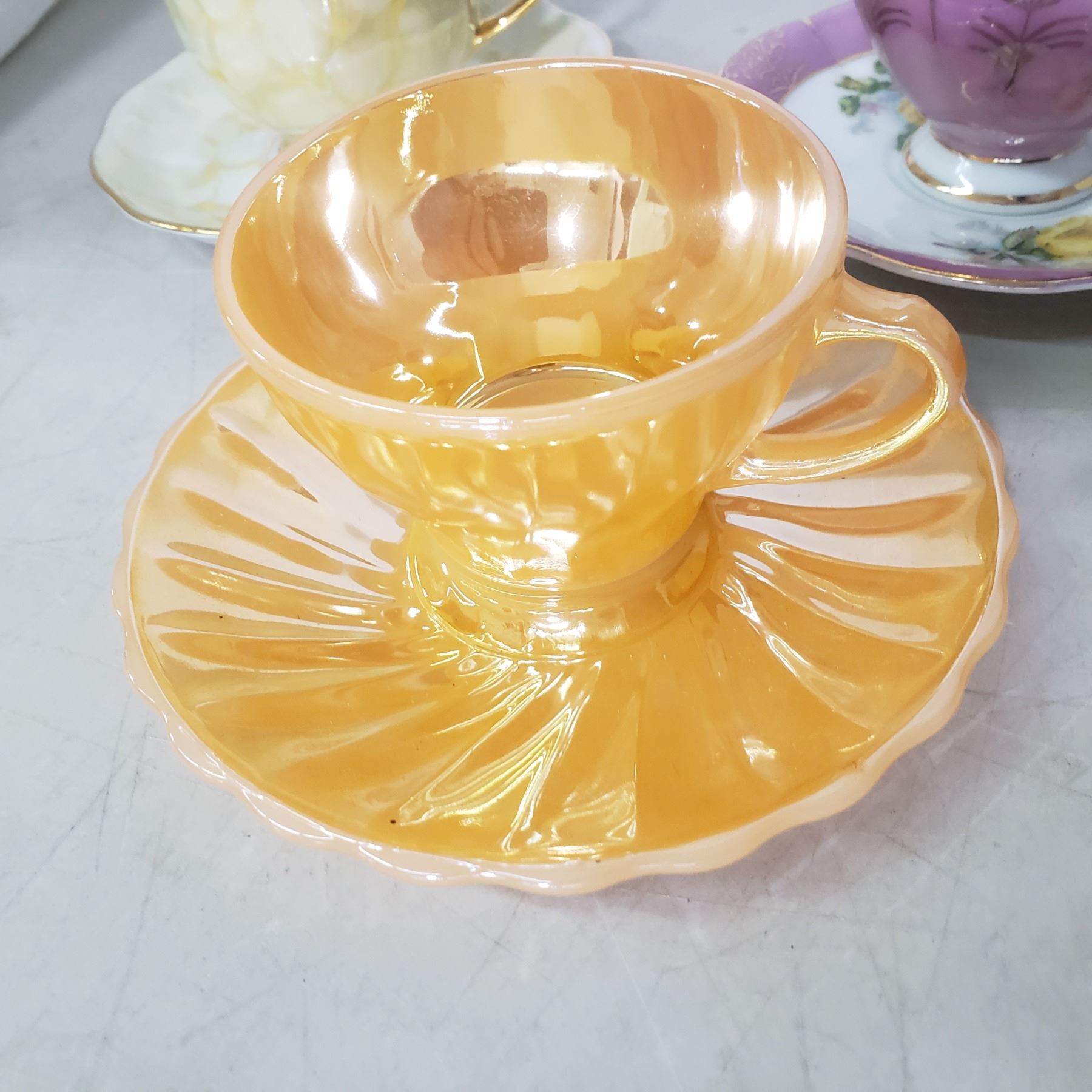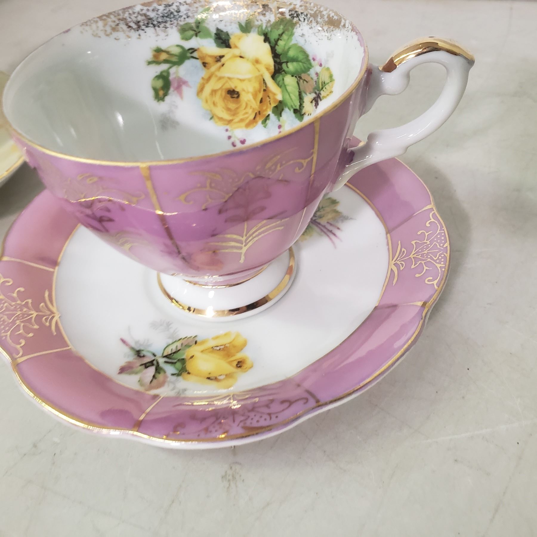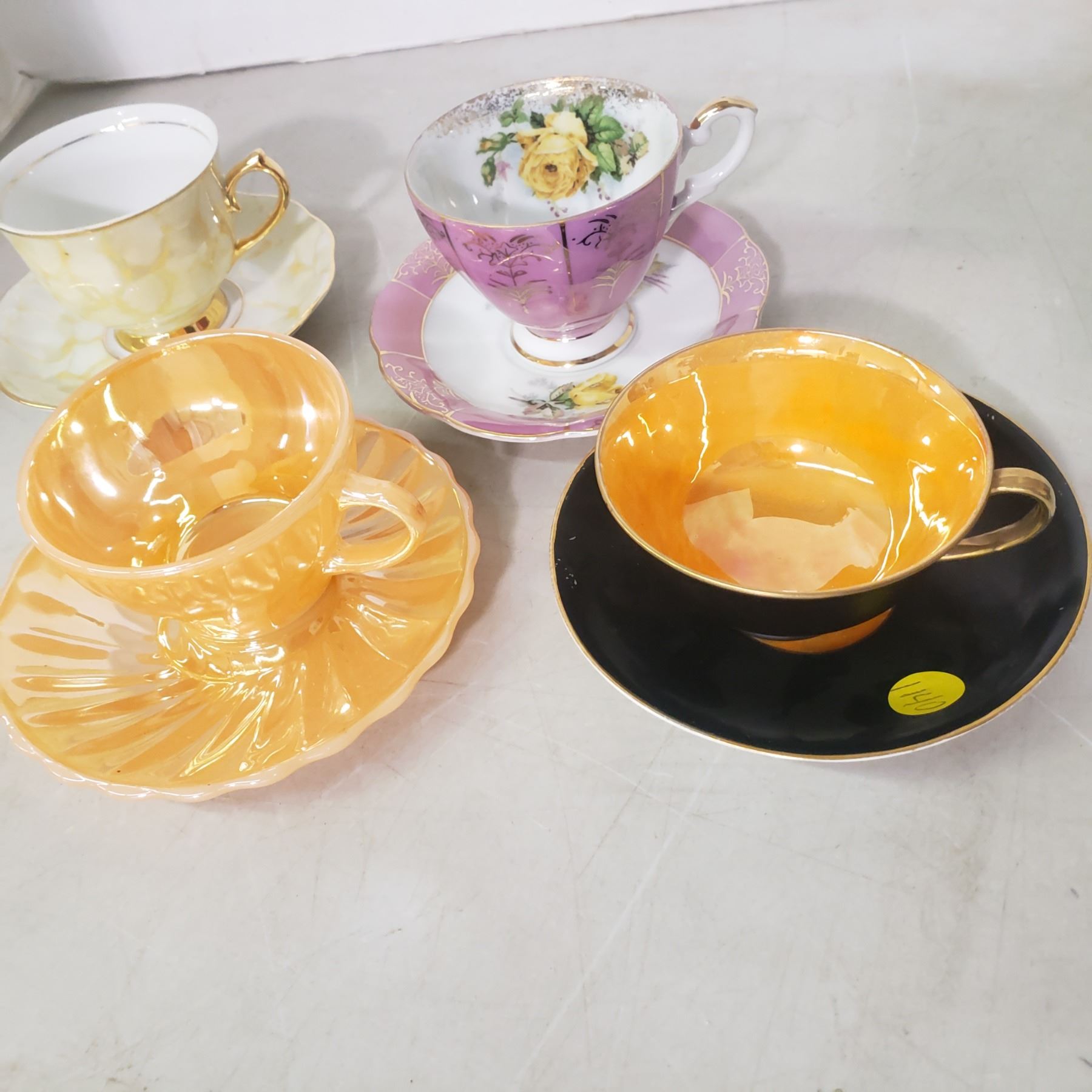 4 fine china teacups with matching saucers