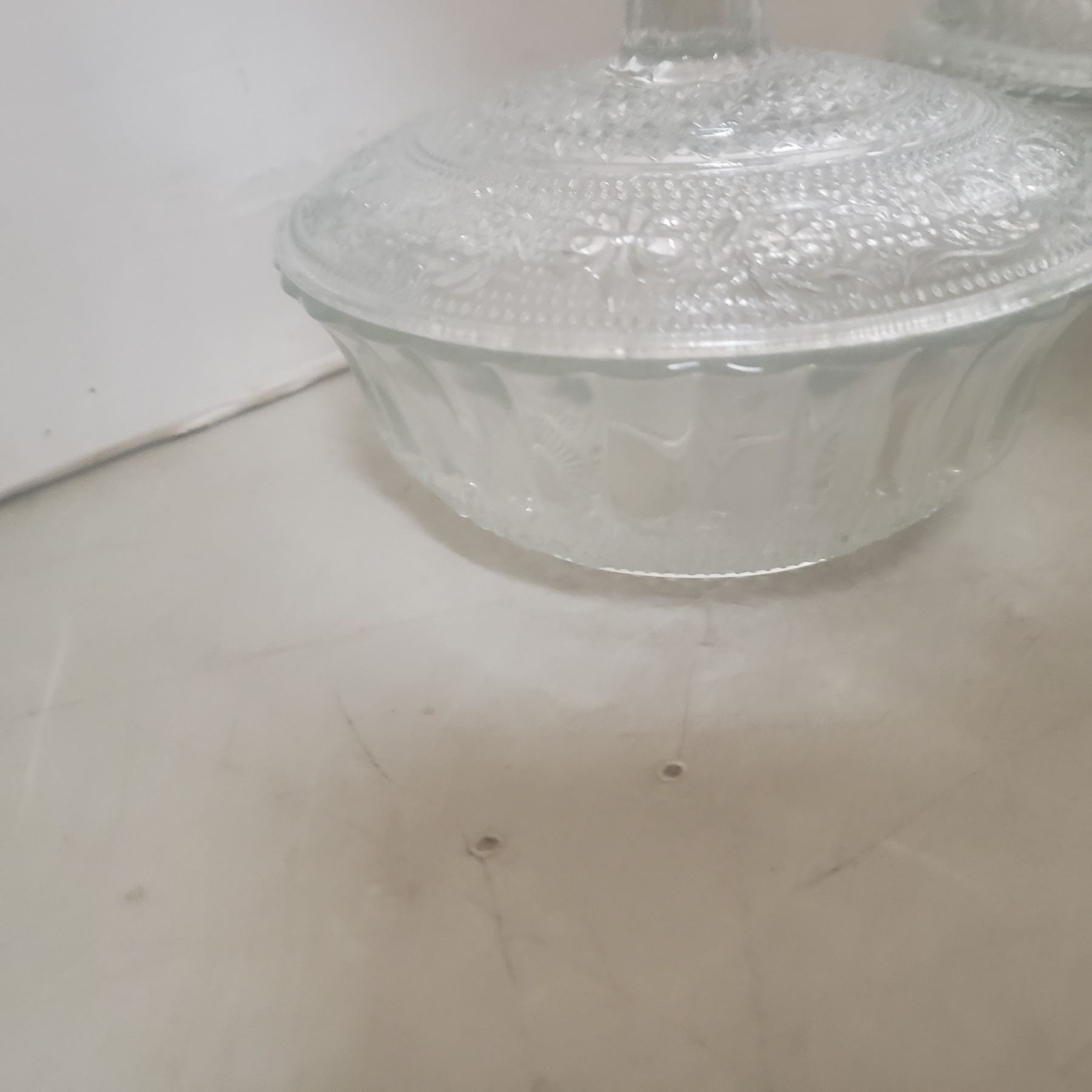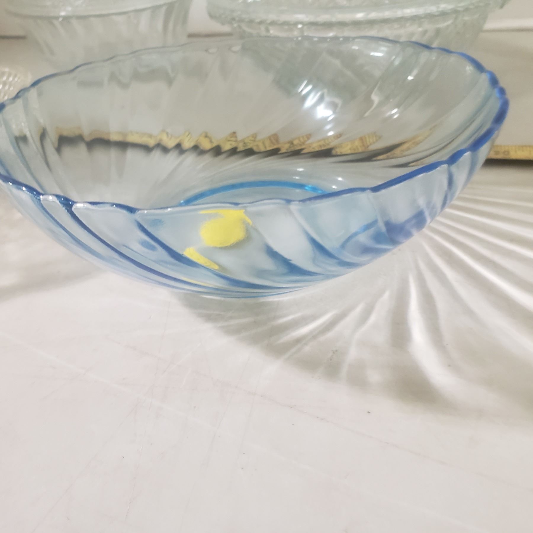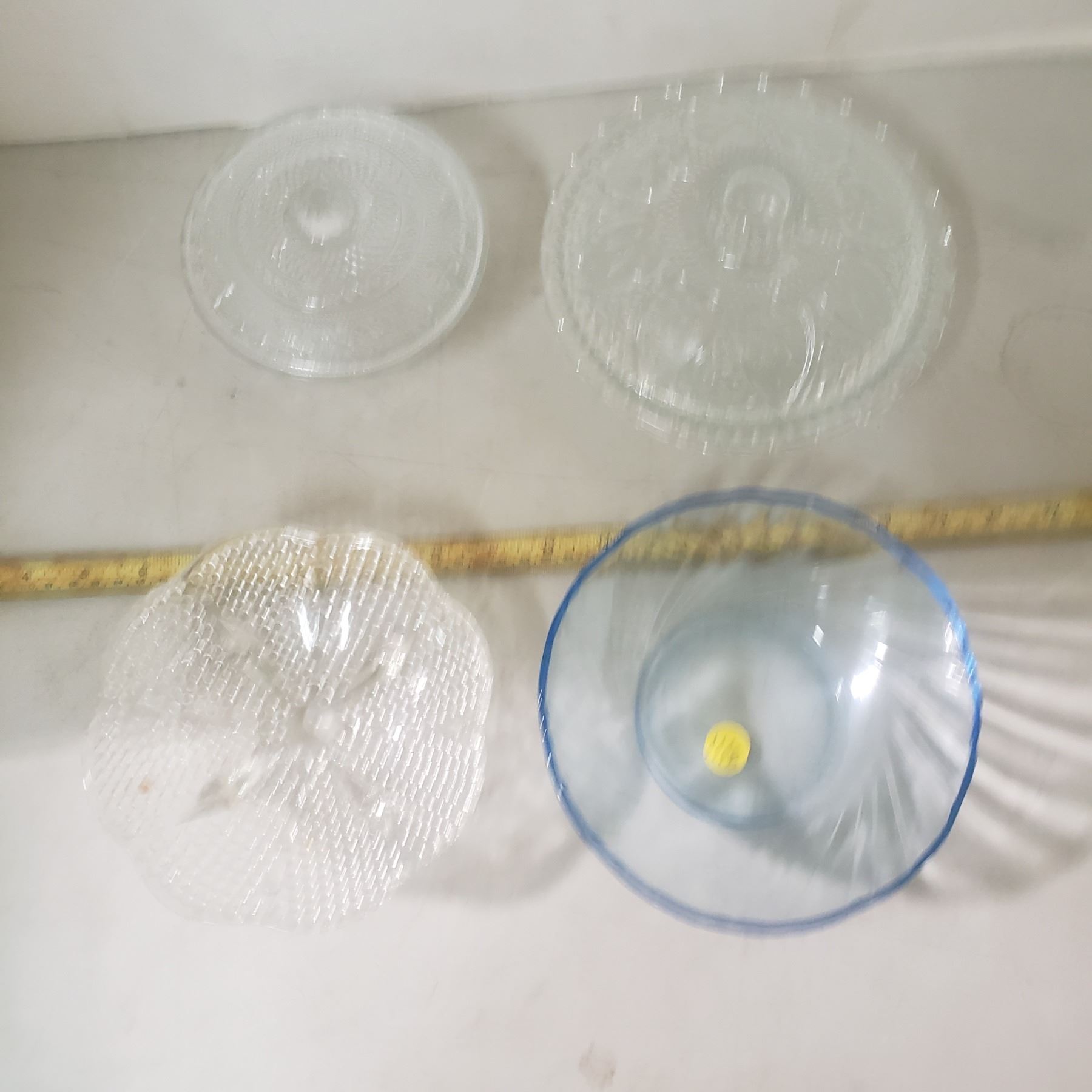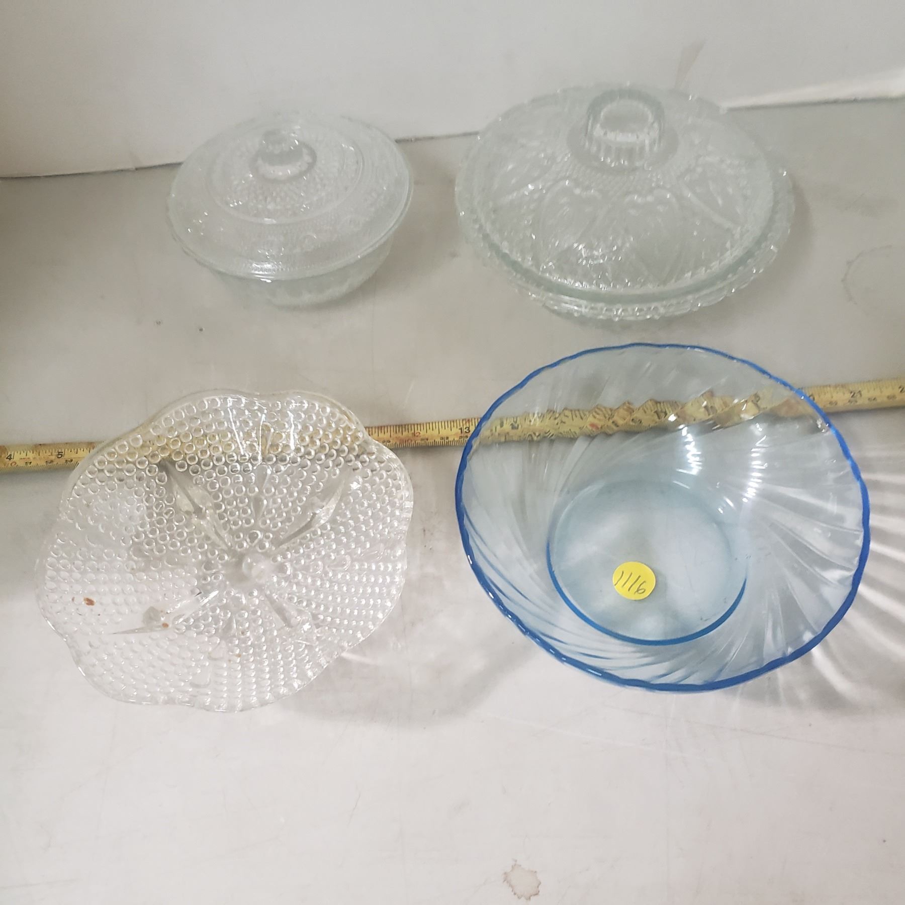 4 glass / crystal bowls one blue, two have lids