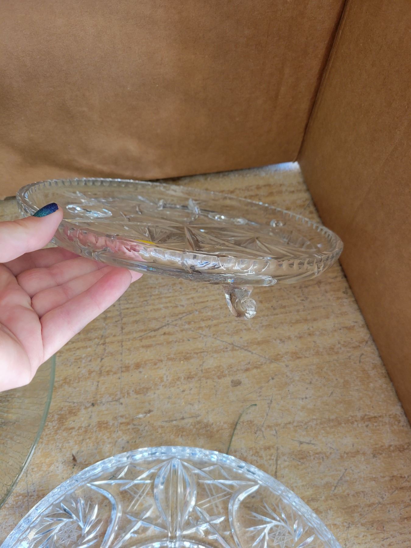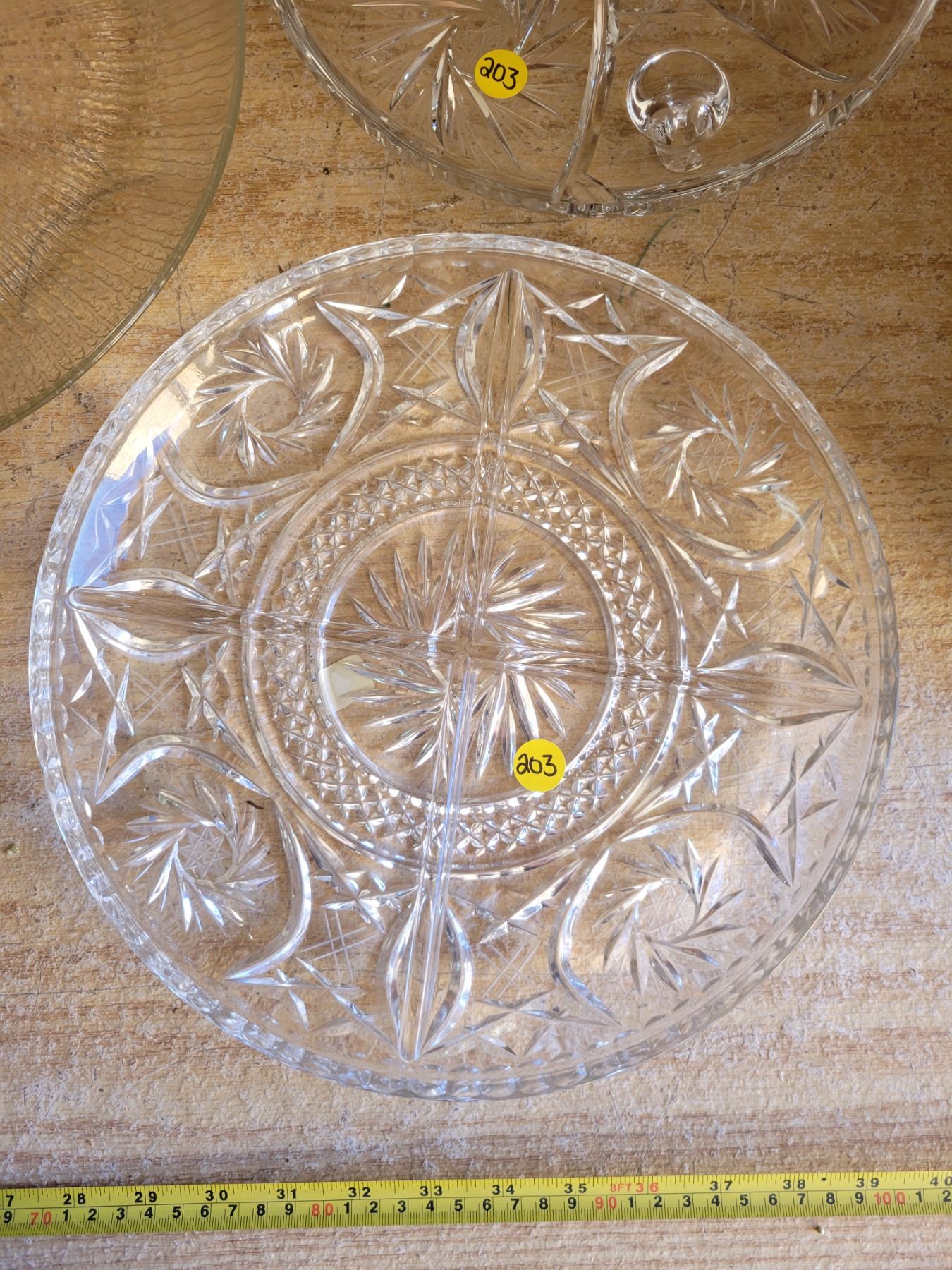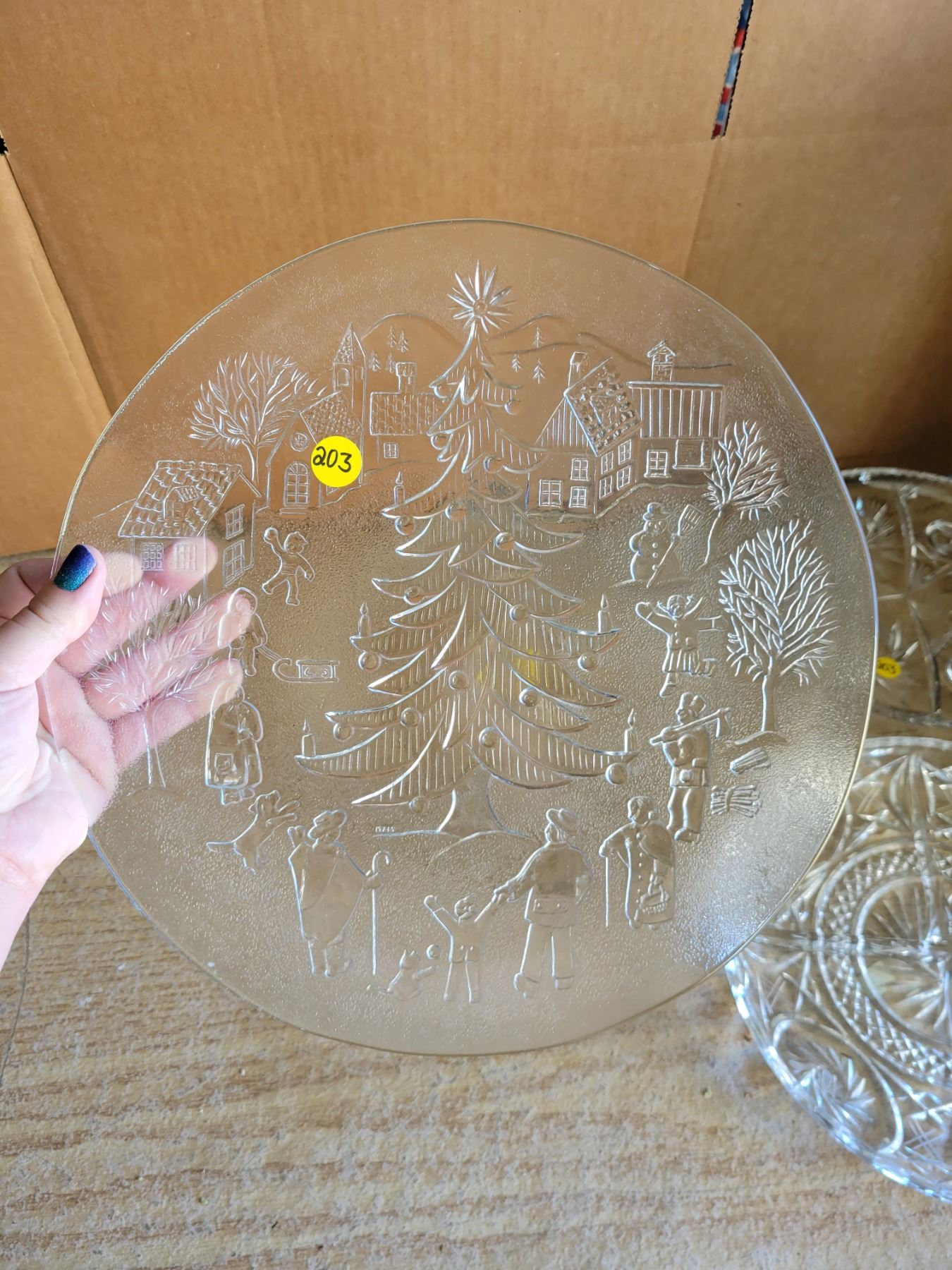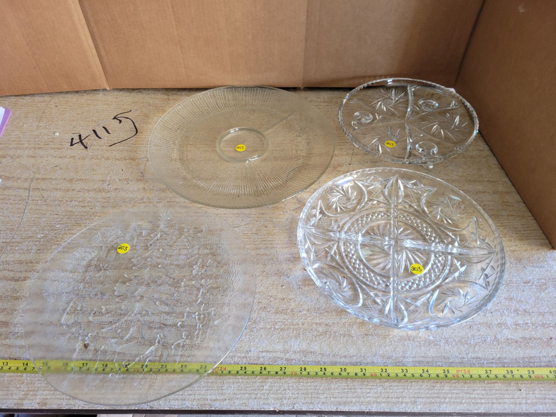 4 large glass serving trays, 1 footed, 2 divided, 1 xmas