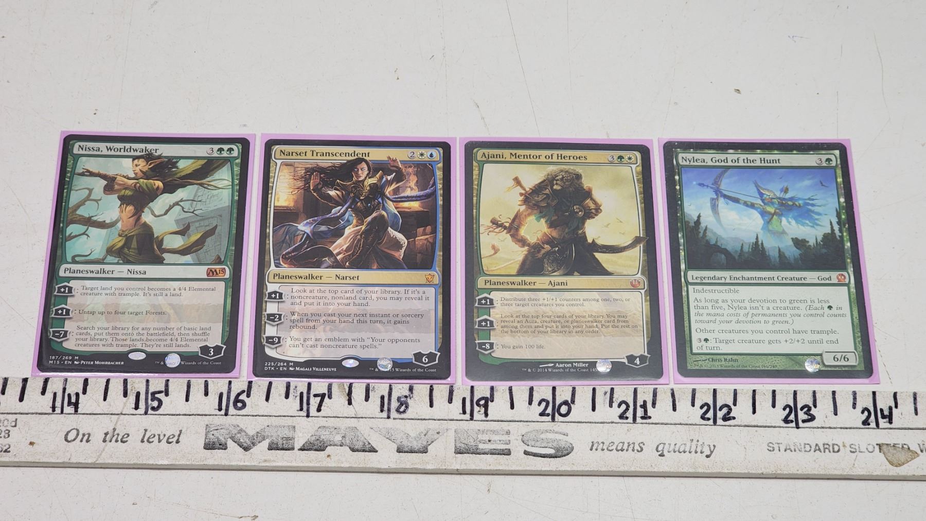 4 mint/near-mint, Magic the Gathering (MTG) cards - 3 Planeswalkers (Ajani, Narset & Nissa) & 1 Legendary - Nylea, God of the Hunt
